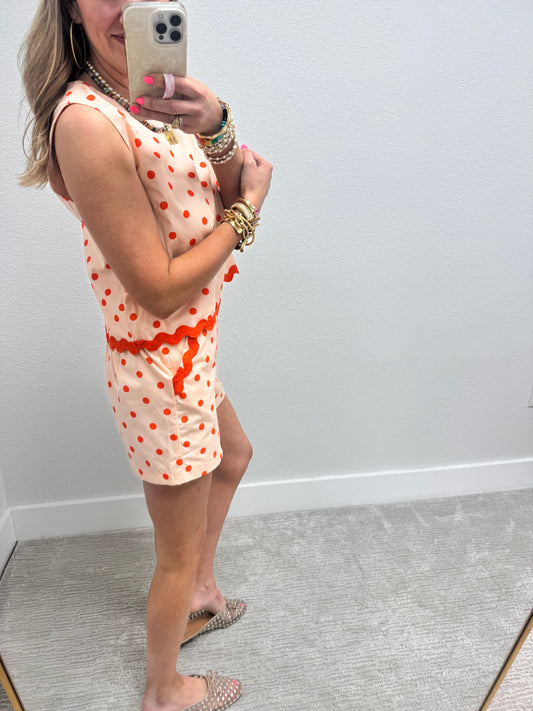 Orange and Cream Polkadot Ric Rac Two Piece Short Set