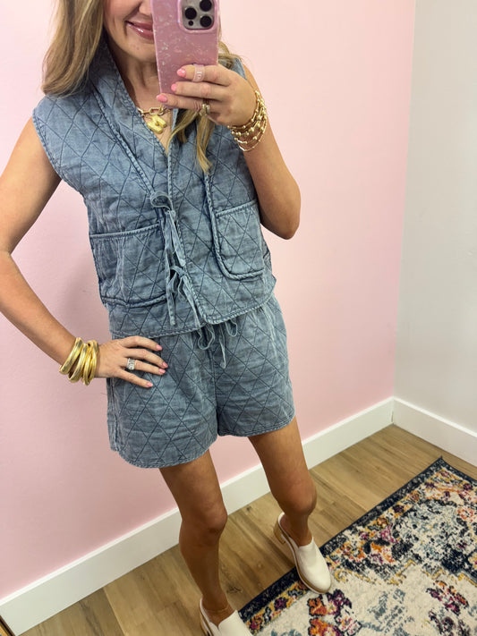 Hot Pink Mineral Wash Shorts with Ribbon Accents