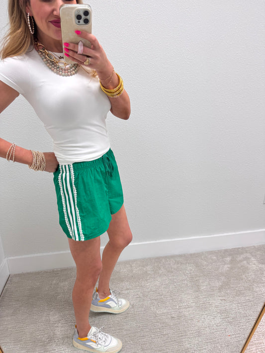 Kelly Green and White Lace Stripe Side Short