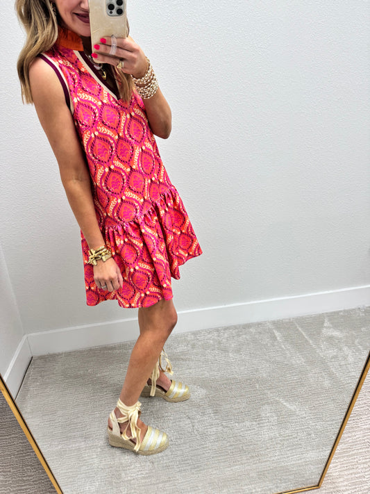 Coral Scuba Printed High Neck Dress
