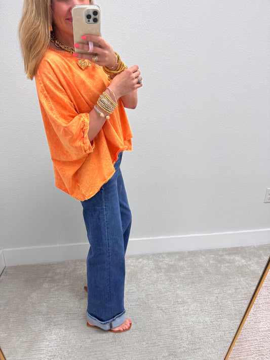 sss59 Mineral Washed Orange Oversized Round Neck Box Tee