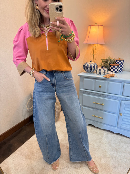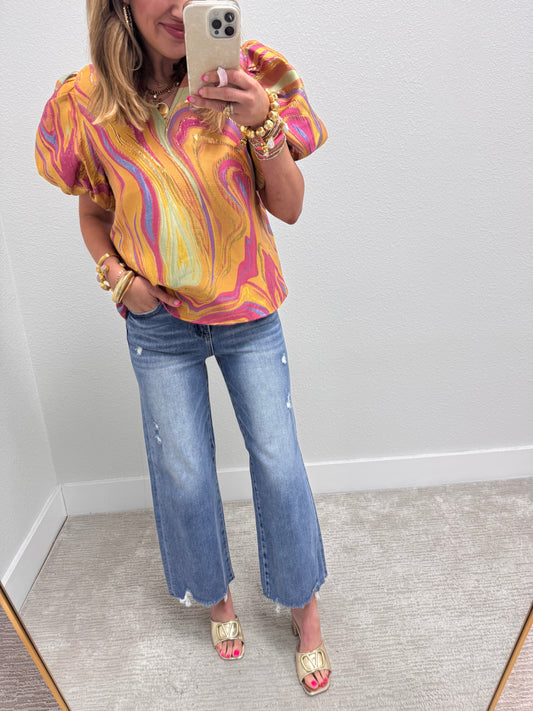 Polka Dot Contrast Edge Scallop Ruffle Top