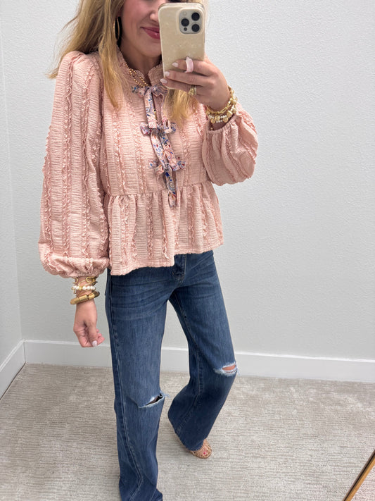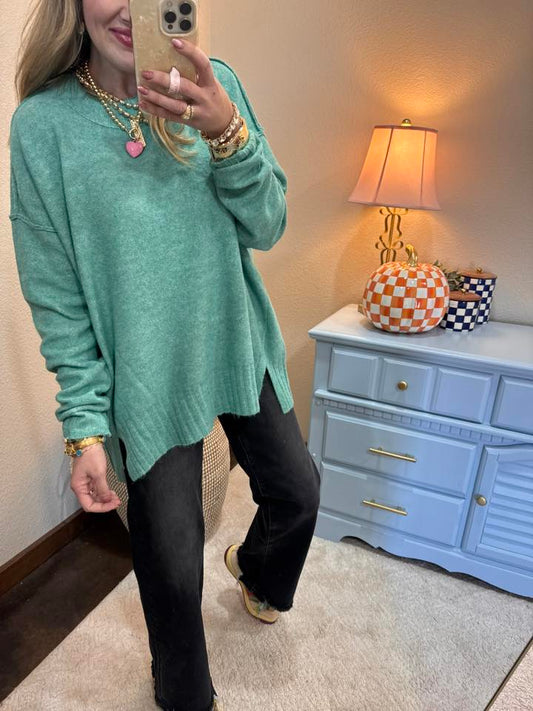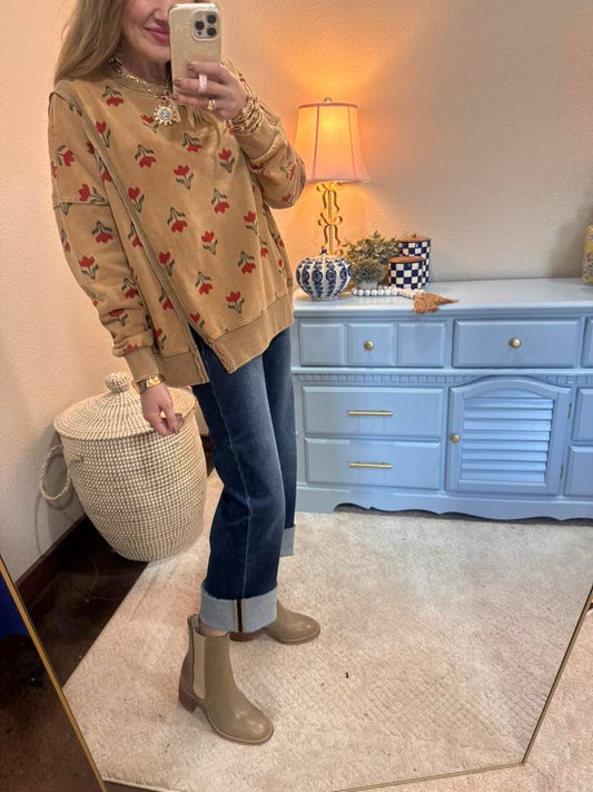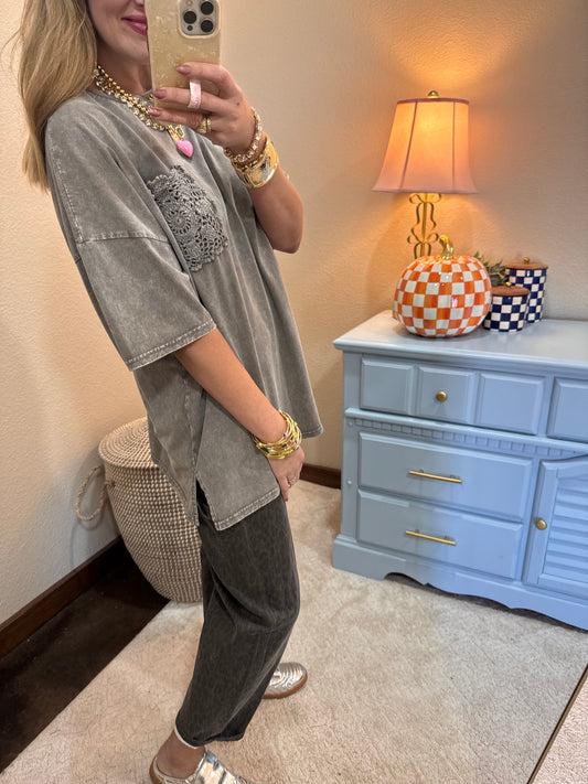 Mocha Mock Neck Mineral Washed Knit Causal Top