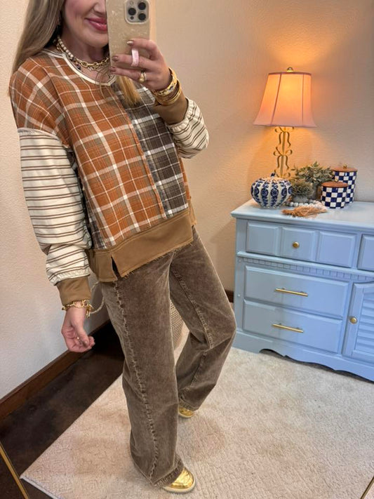 Rust & Dark Mocha Plaid and Stripe Mix & Match Top
