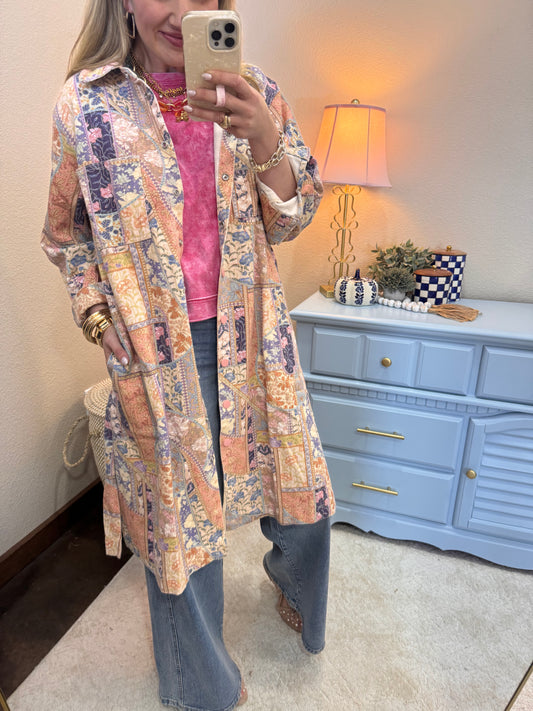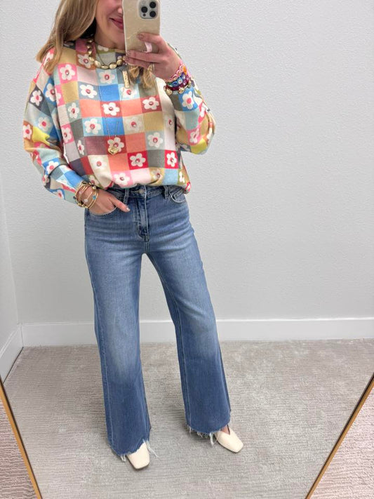 Pastel Floral Textured Knit Pattern And A High Neckline Sweater