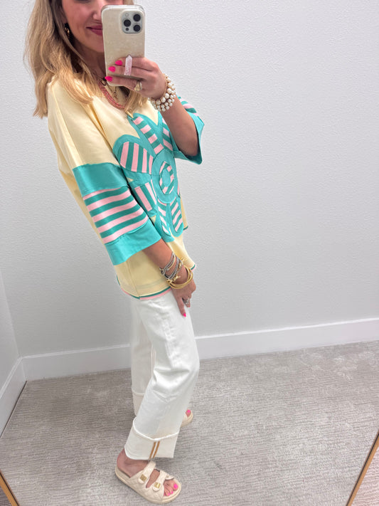 Ivory & Jade Stripe Flower Patchwork Top