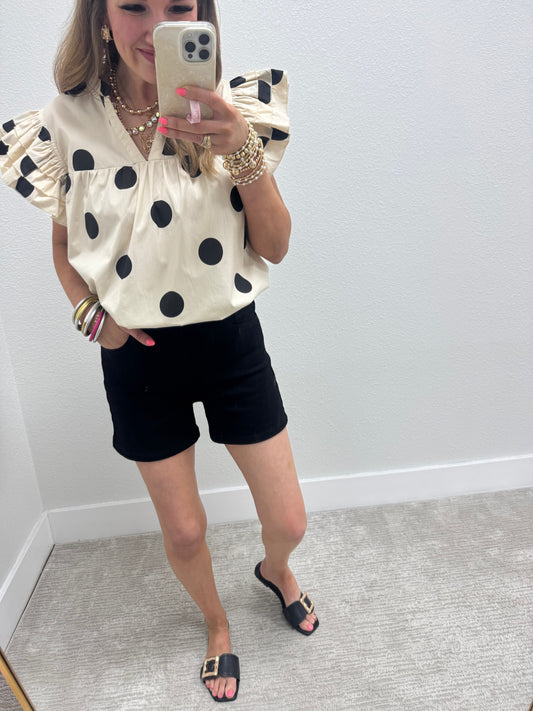 Cream and Black Big Dot Ruffle Sleeve Shirt