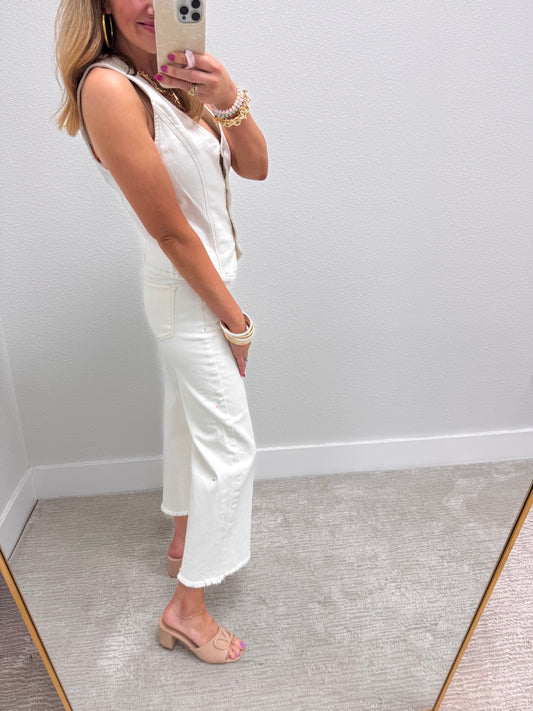 Risen Cream Denim Button Vneck Vest
