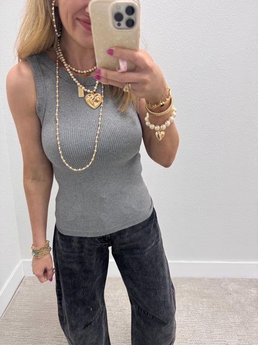 Grey Ribbed Tank