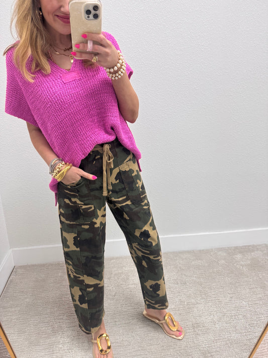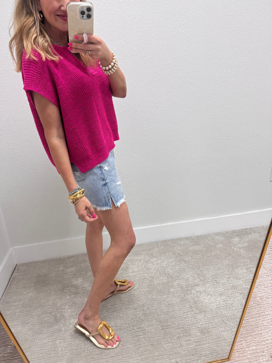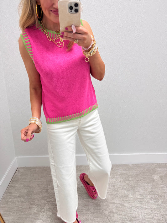 Fuchsia and Lime Solid Sleeveless Knit Top