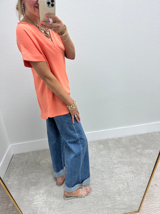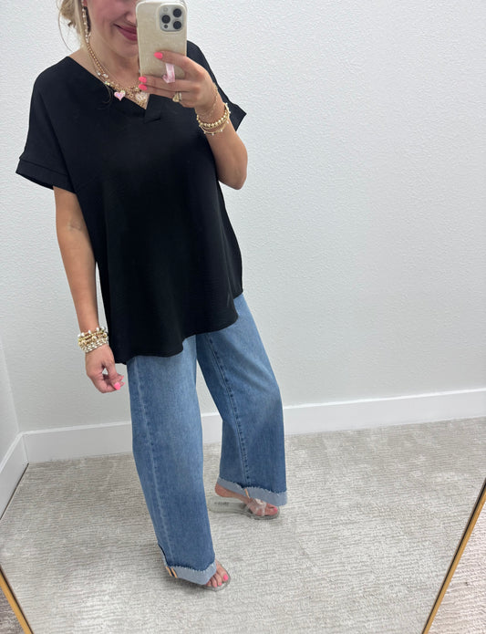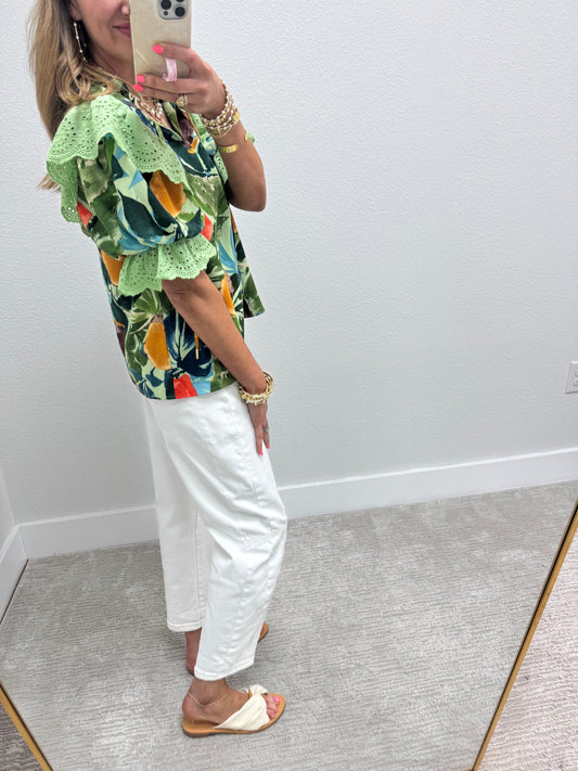 Yellow and Gray Smocked Top Flutter Sleeve Top