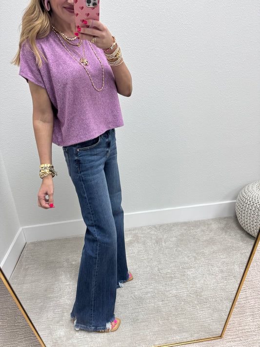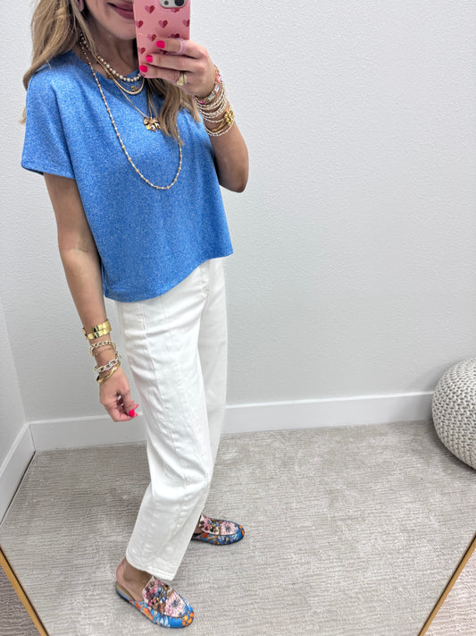 Ocean Blue Melange Super Soft Crop Short Sleeve