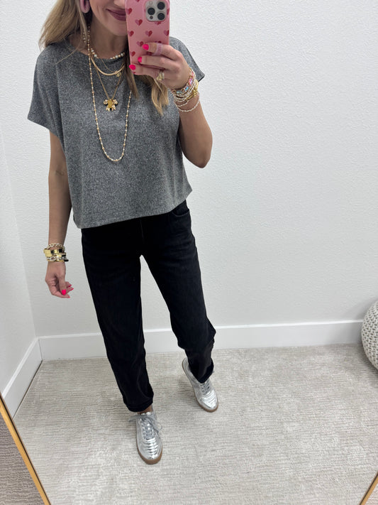 Turquoise Green Melange Super Soft Crop Short Sleeve