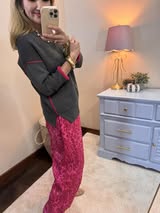 Charcoal & Hot Pink Round Neck Contrast Trim Sweater