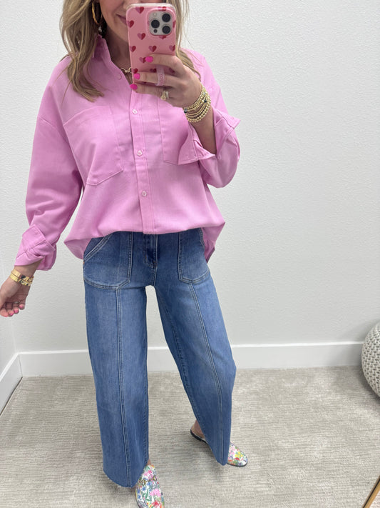 Pink Linen Blend Long Sleeve