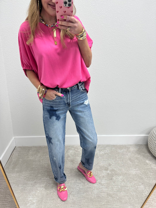 Fuchsia Elastic Arm Dolman Short Sleeve