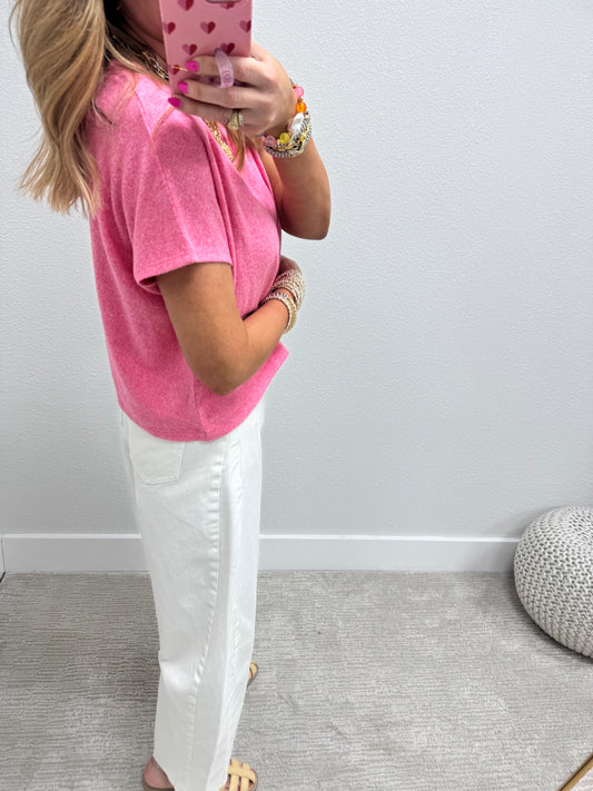 Pink Melange Super Soft Crop Short Sleeve