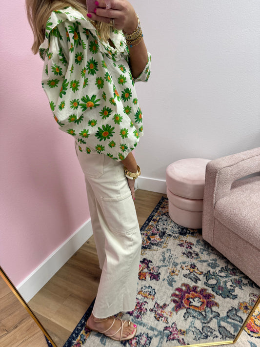Green Daisy Large Collar Top