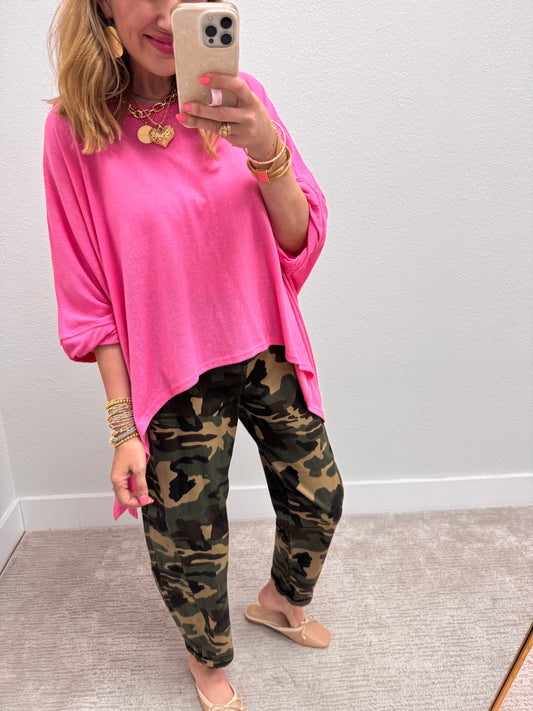 Oversized Pink Solid Asymmetrical Short Sleeve Top
