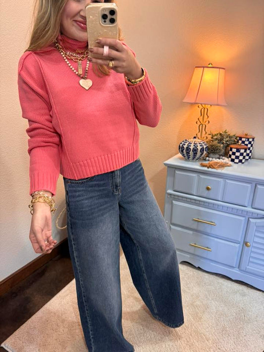 Taffy Pink High Roll Neck Sweater