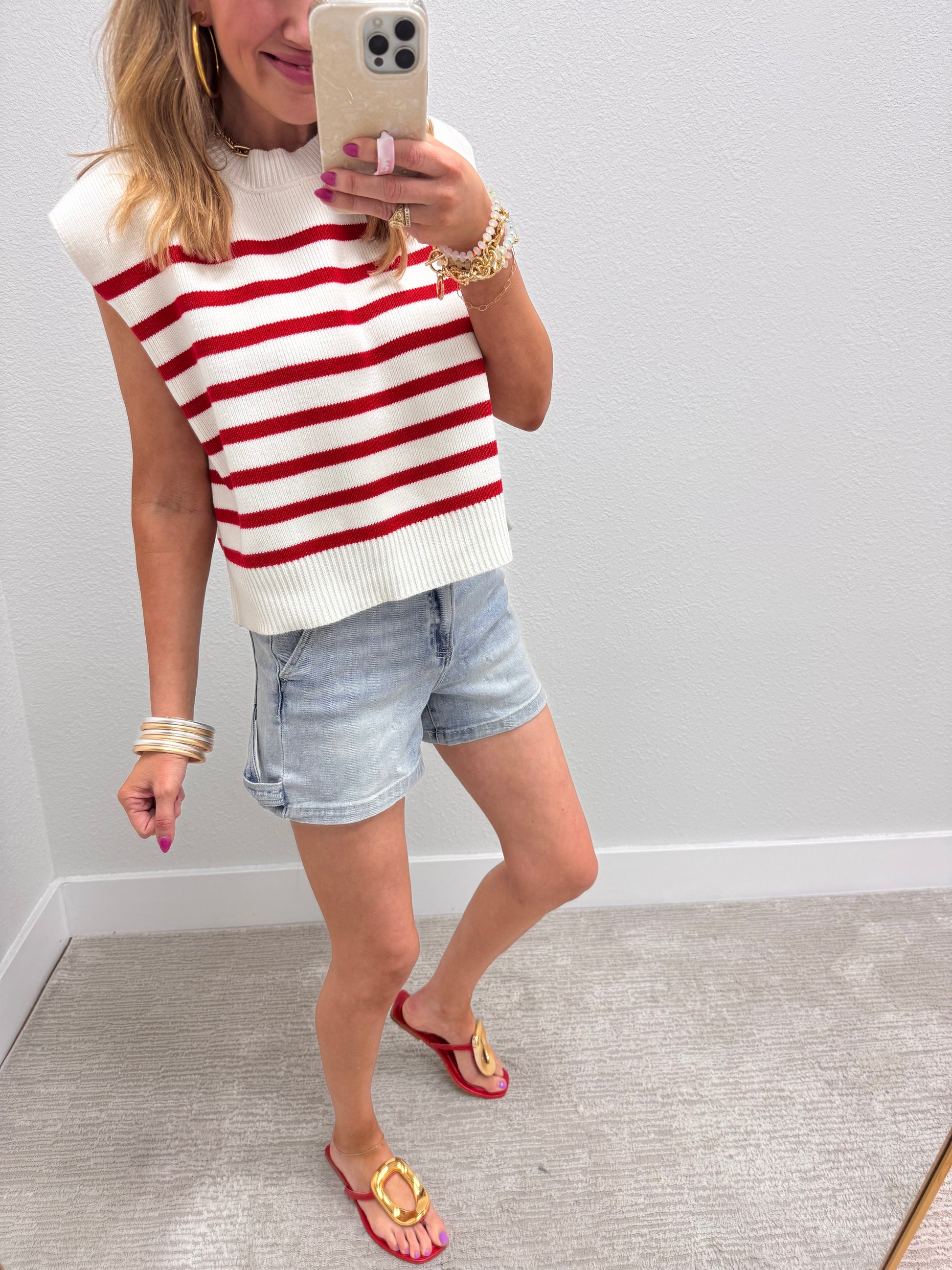 Red and Cream Striped Sweater Vest Top