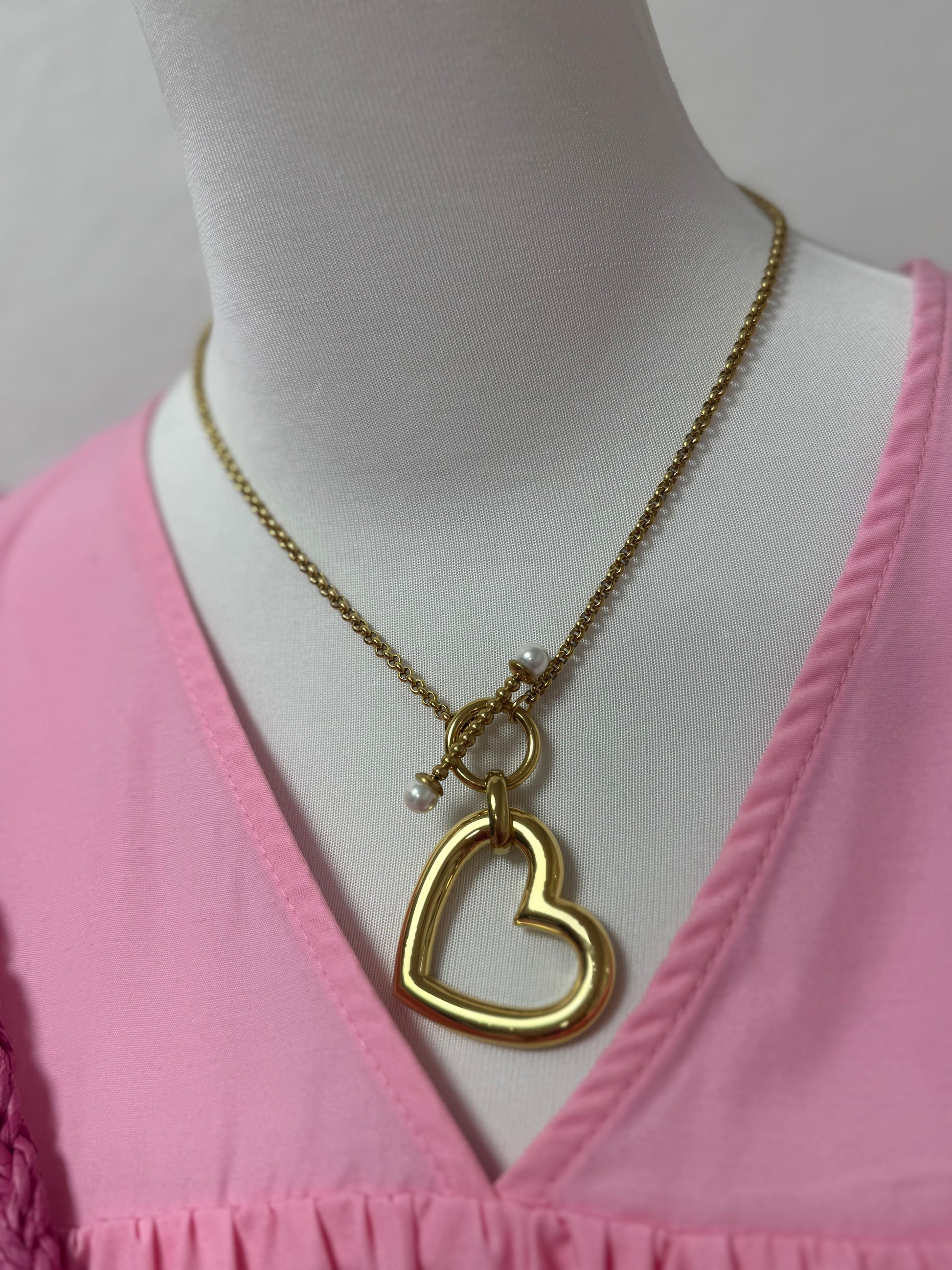 Antique Gold Front Pearl Clasp Heart Necklace