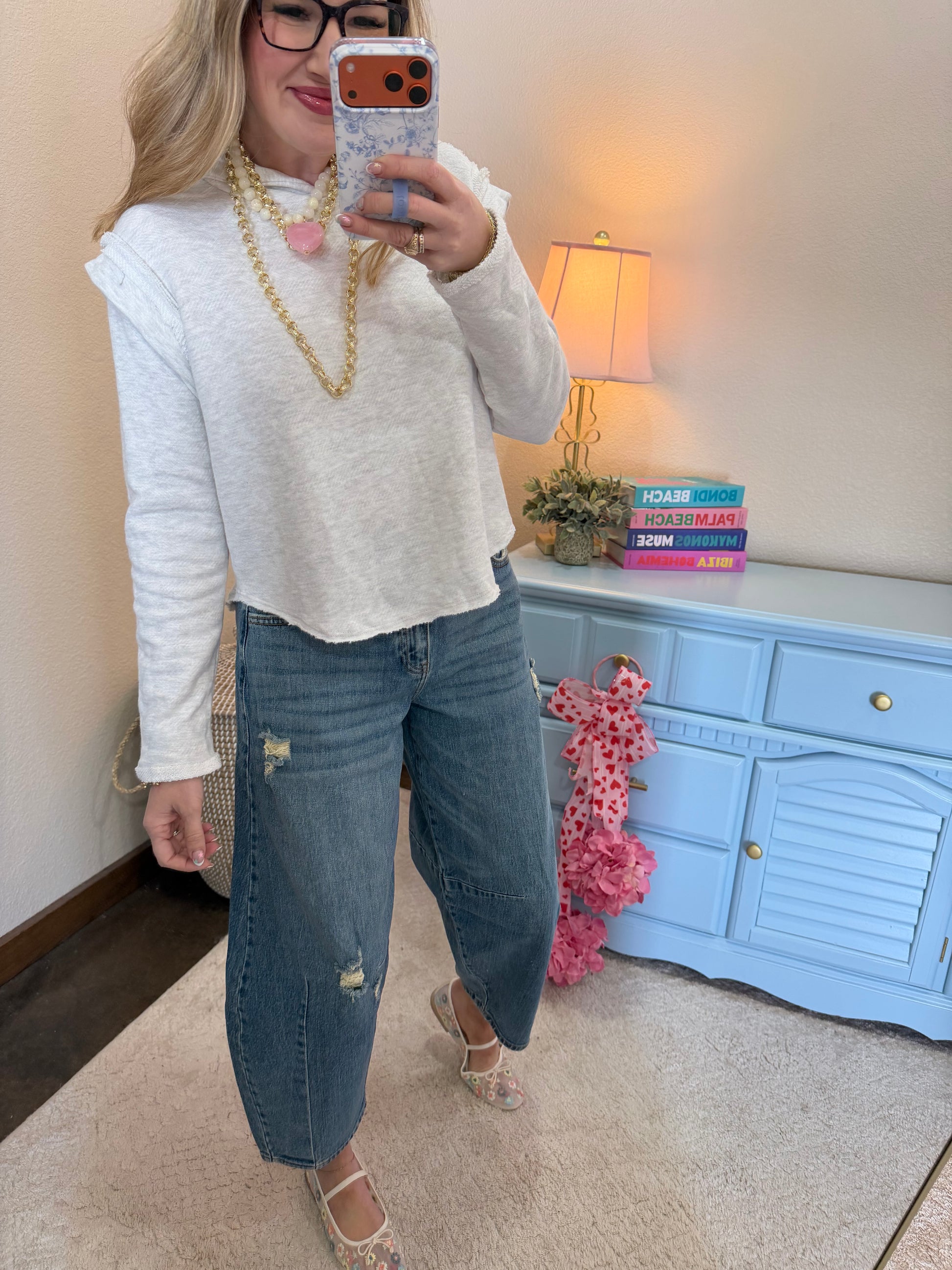Ash Grey Cap Shoulder Detail Terry Hoodie Top
