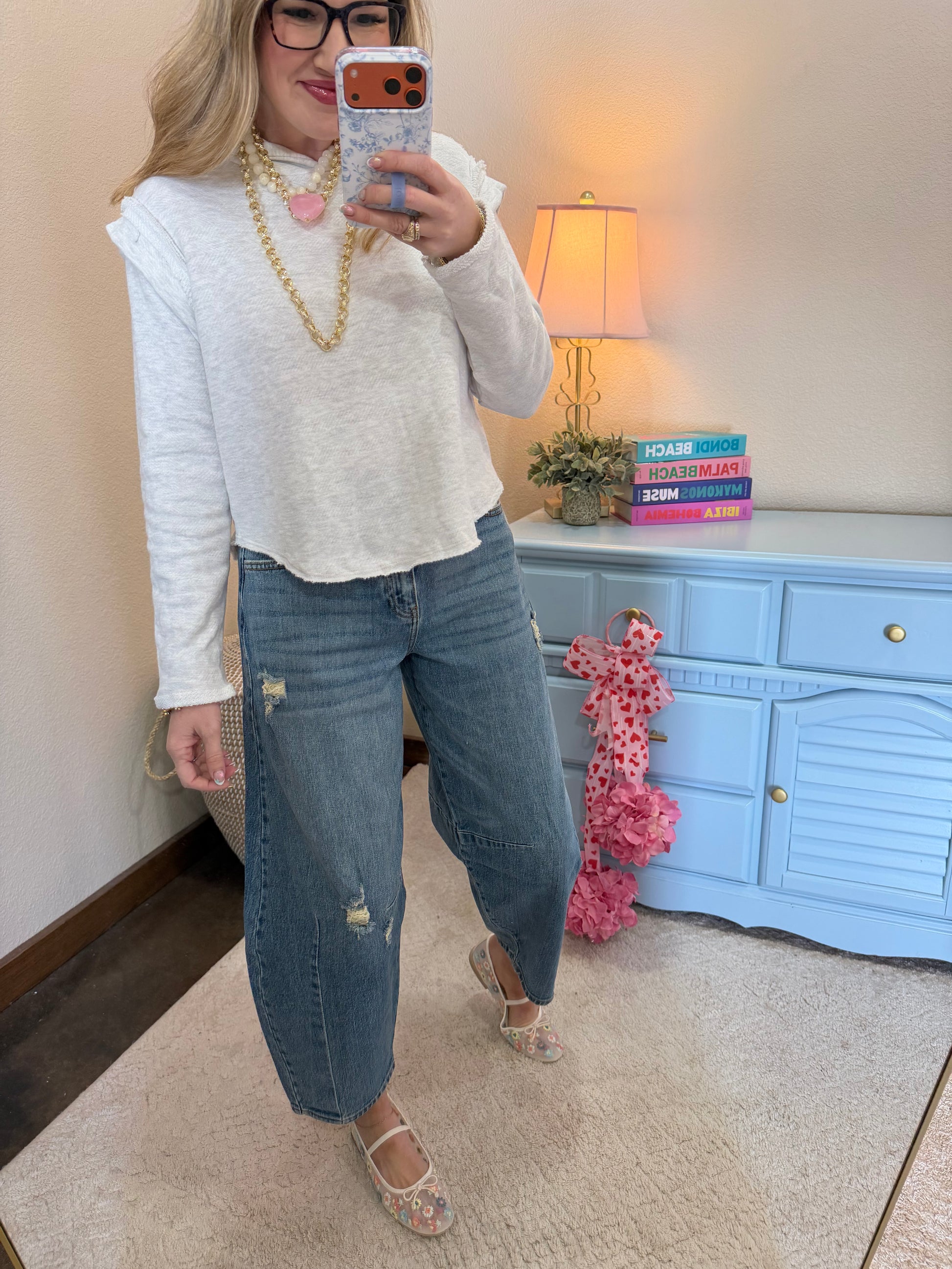 A simple little top but such cute detail and such a cute fit!! A very nice light weight French terry and just a great little everyday top! A tts fit, Macy is a 2/4 and 5’7 wearing the small.
