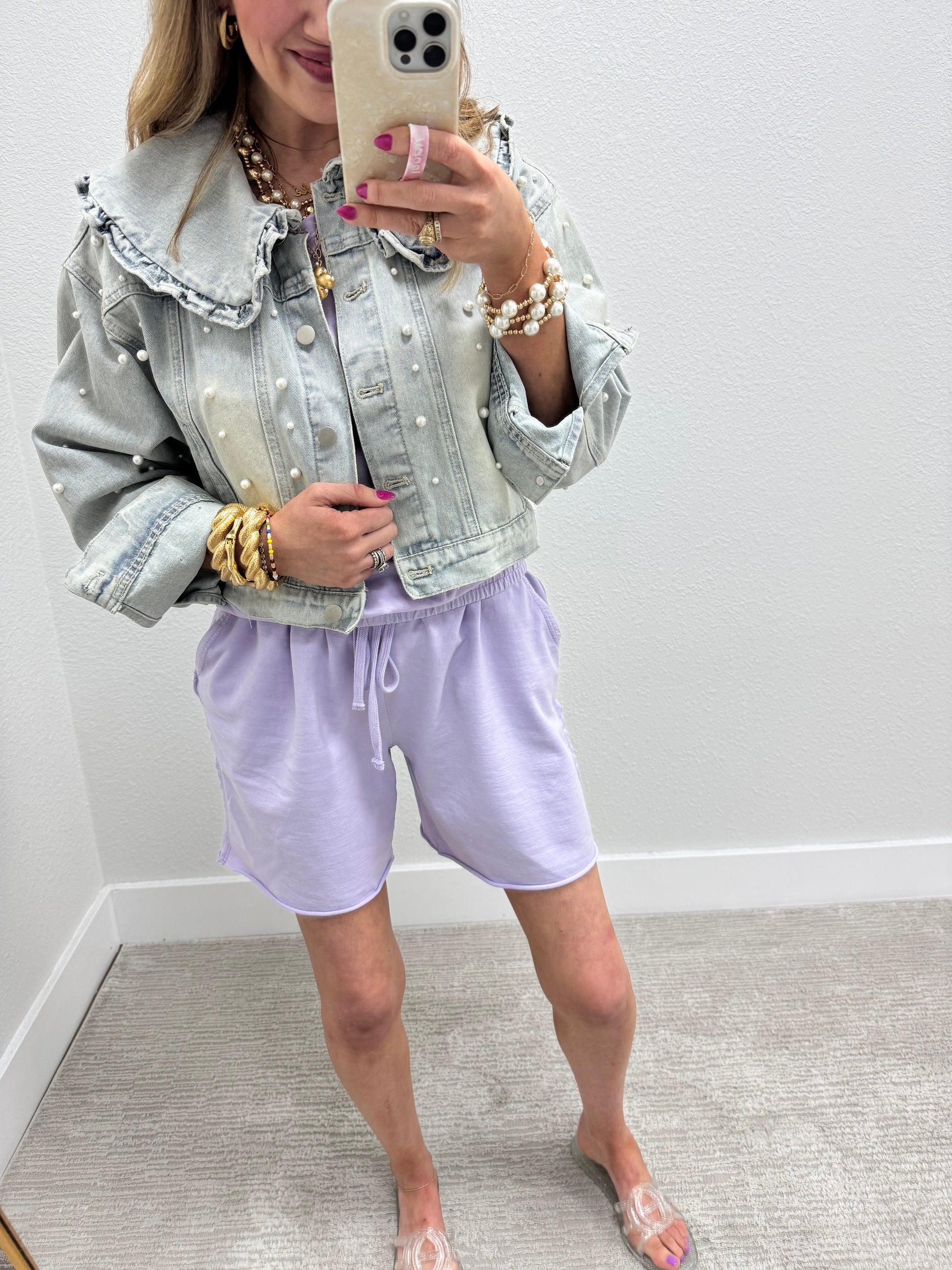Denim Collared Pearl Jacket