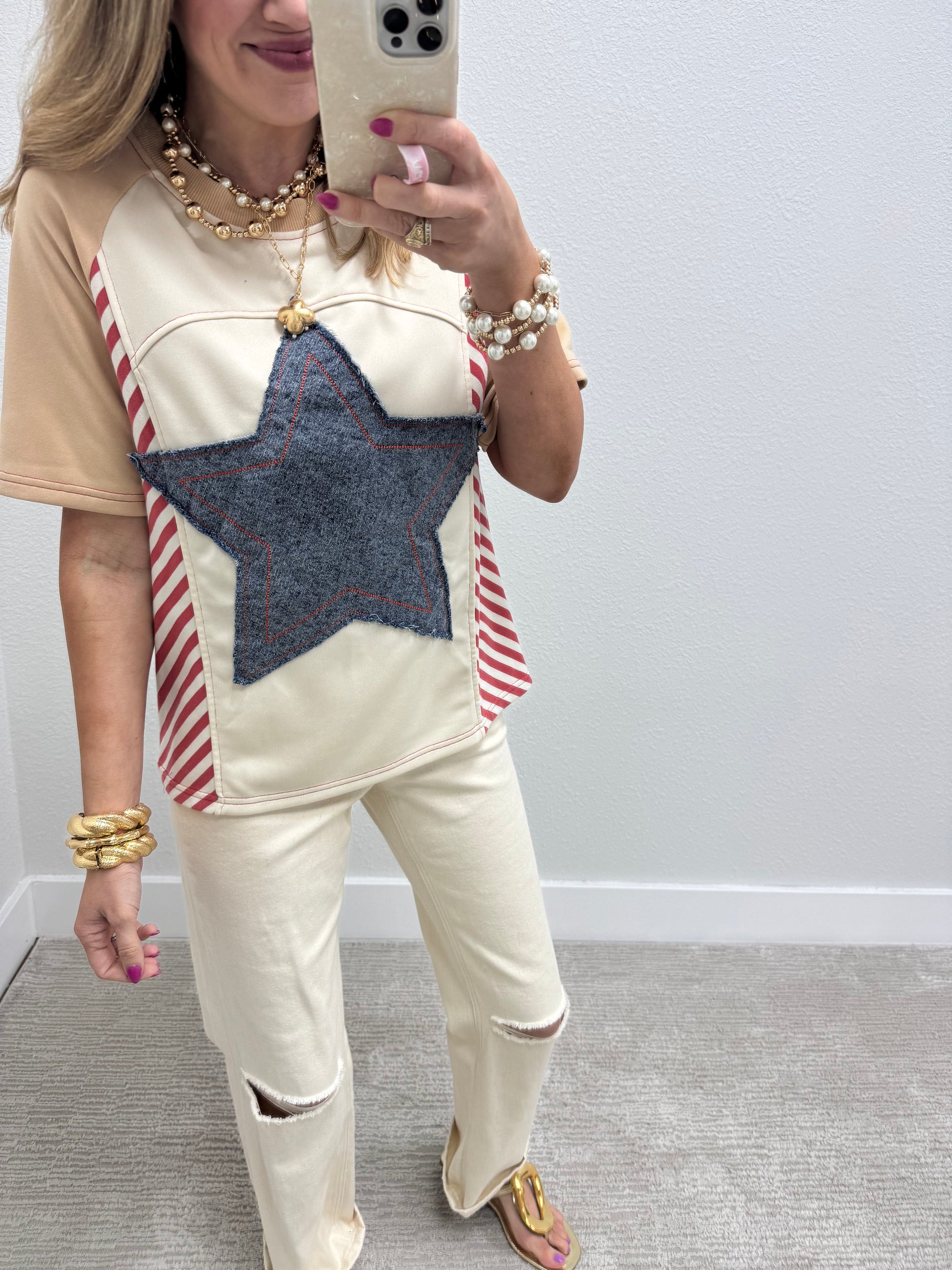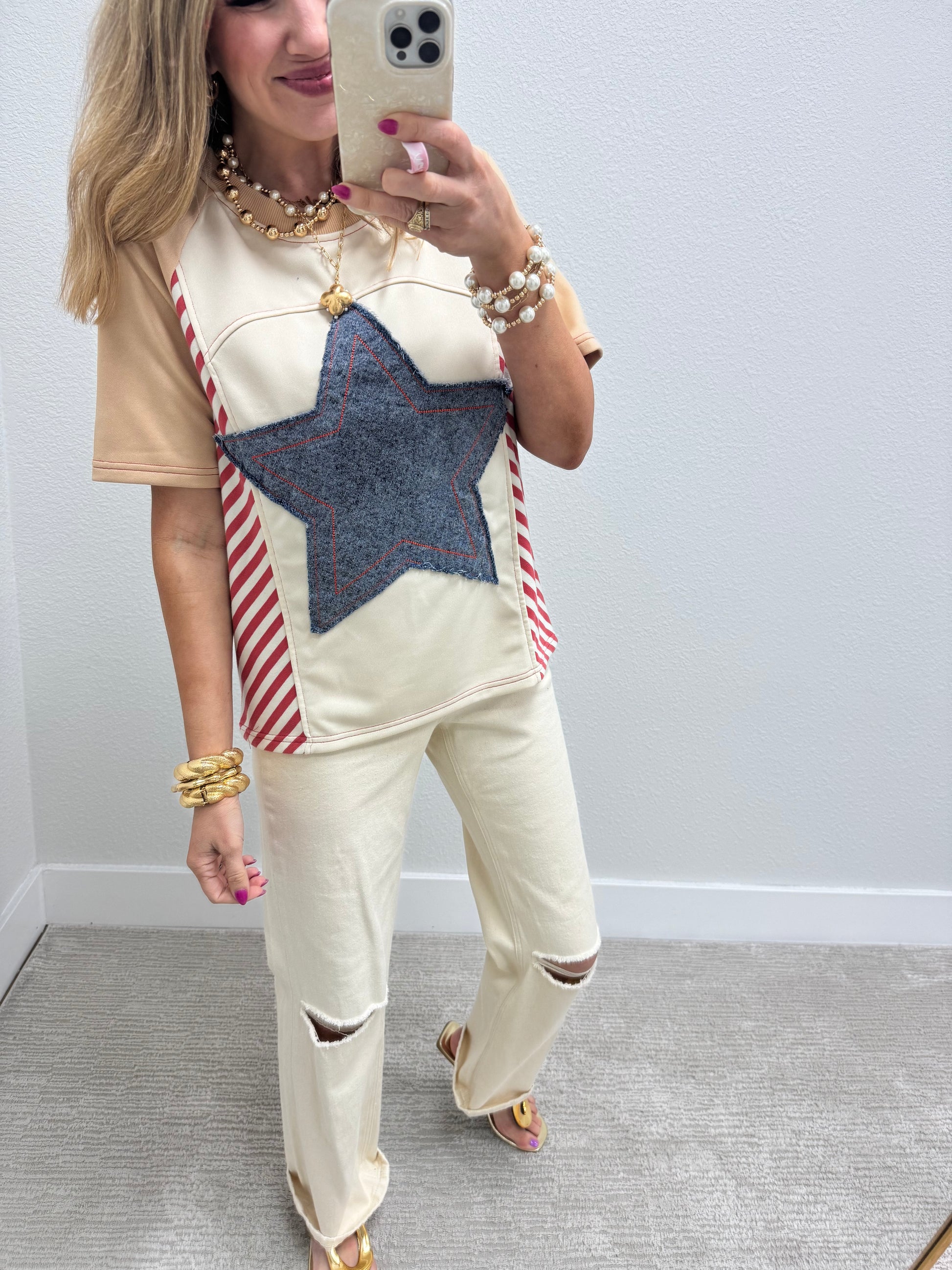 Cream and Denim Mix Star Short Sleeve FS
