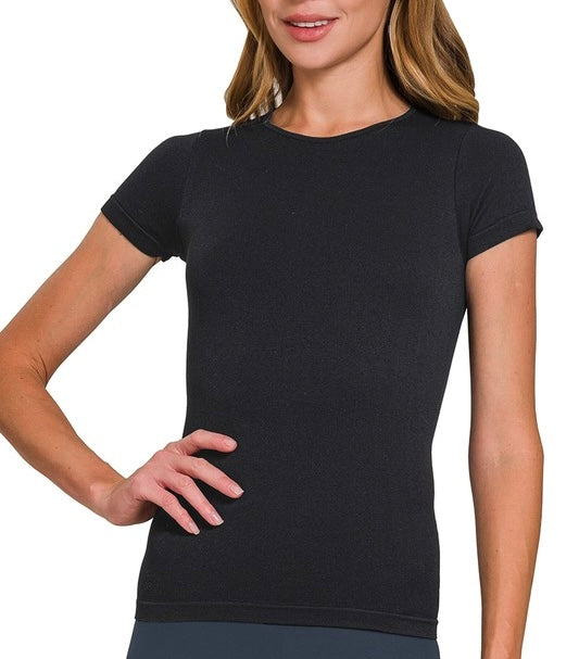 Black Seamless Crew Neck Short Sleeve