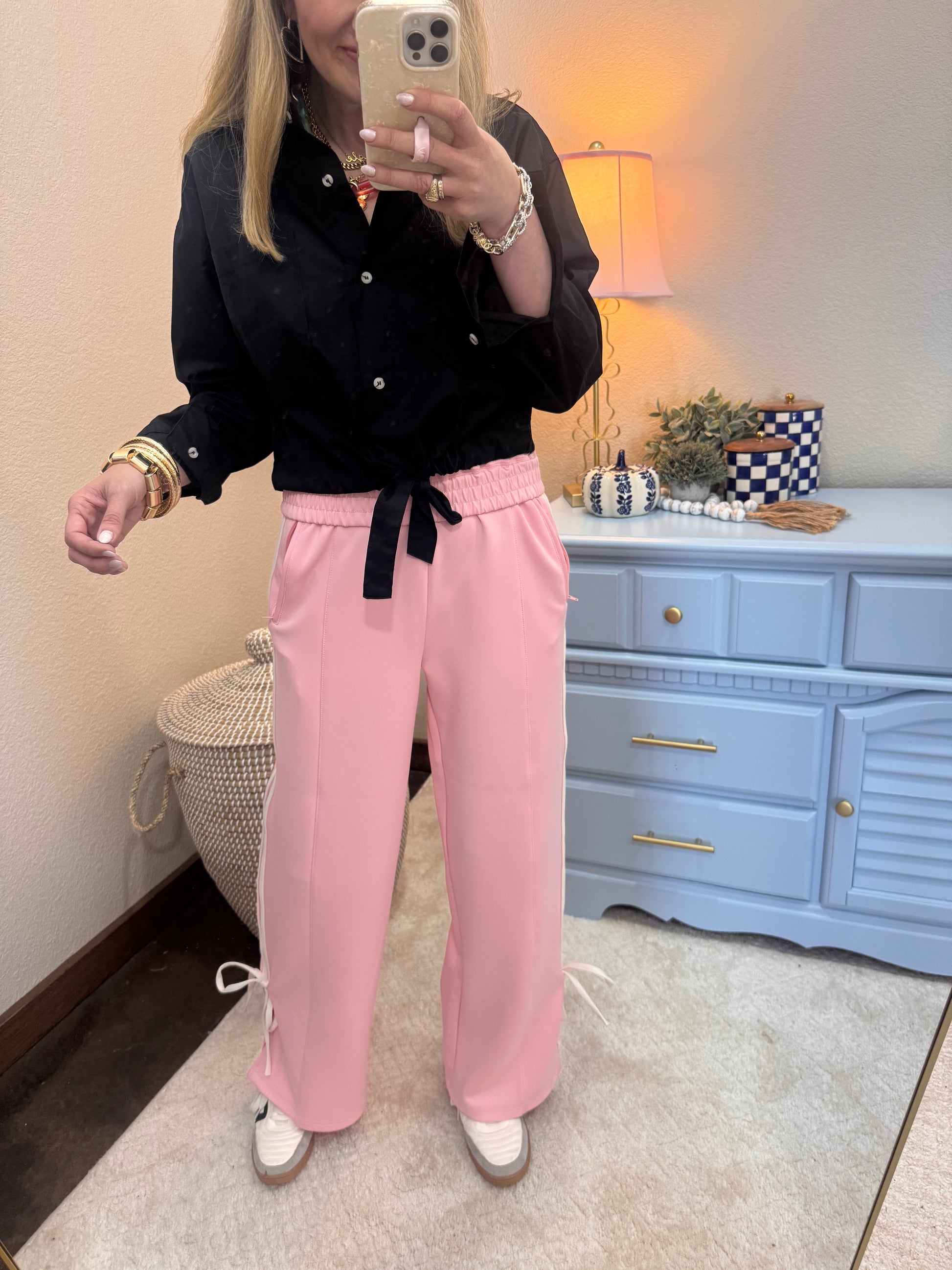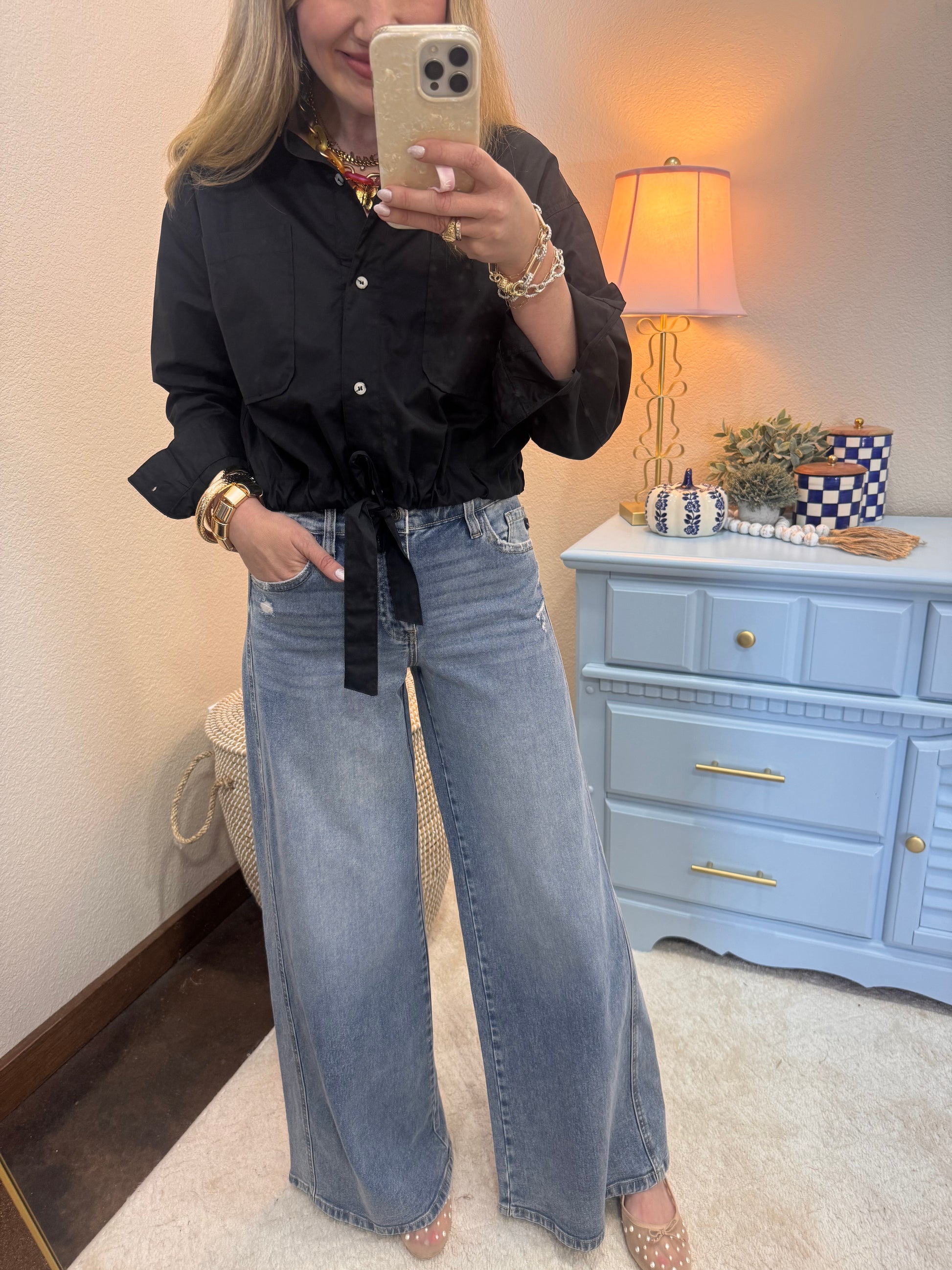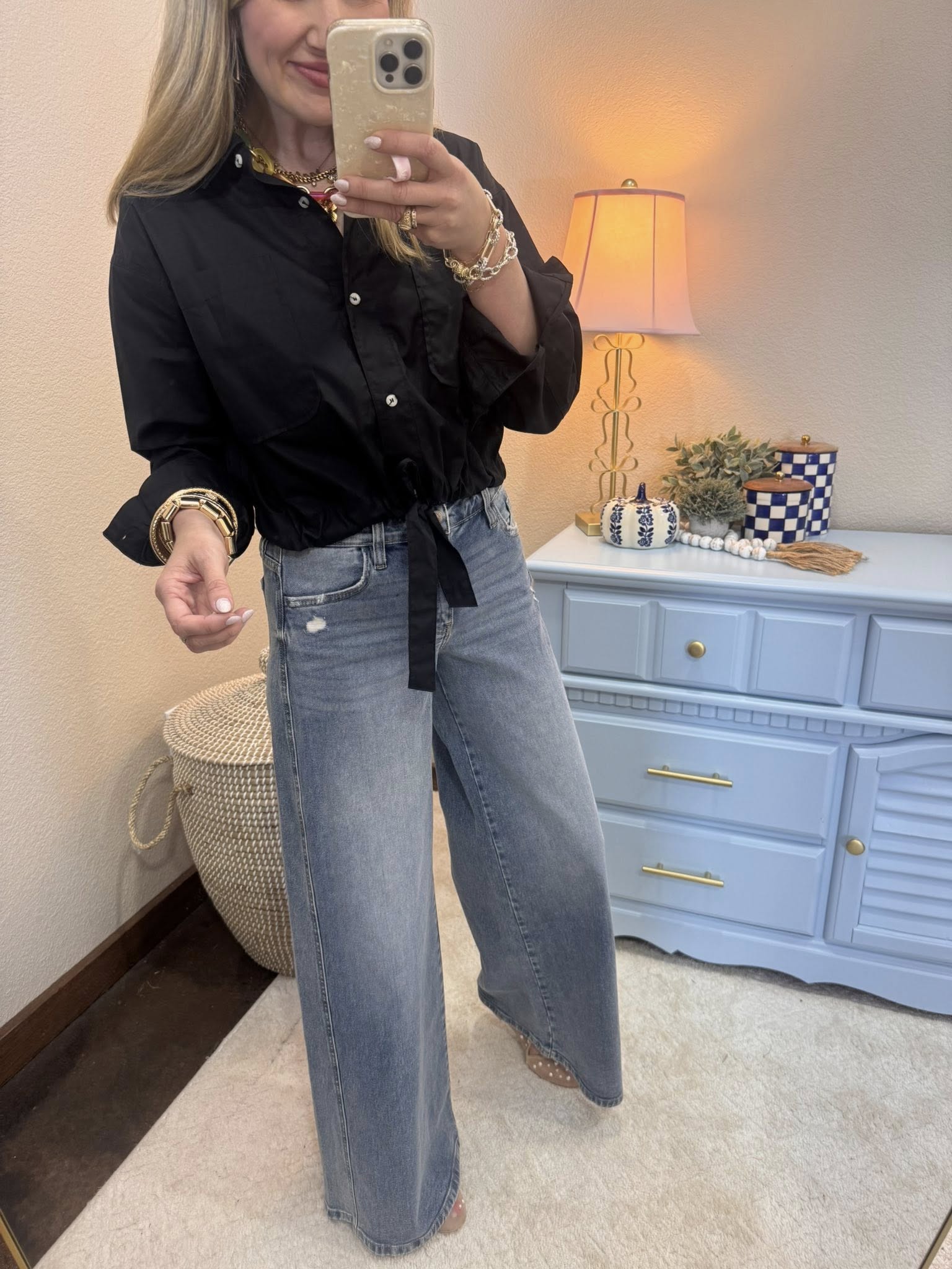 We LOVE these new tie front tops. They are a really nice cotton material so there is no stretch, but they are a relaxed TTS fit and you can make the bottom tighter or looser. They are longer in the back and just going to be a top you wear over and over, styles so many ways. Macy is a 2/4 and 5’7 wearing the small