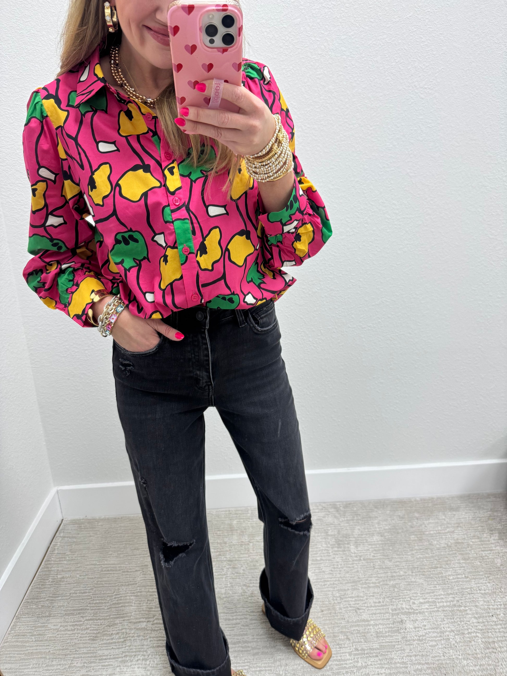 If you want a cute pair of black jeans, these are for you!!! Stretchy and amazing and can be worn straight or cuffed!! They are a high rise and approx 32" inseam. They are 70& cotton, 22% poly, 7% Rayon, 1% Spandex. Macy is wearing her true size 25 here but because of the stretch, probably could have sized down also, she is 5'7 for height.