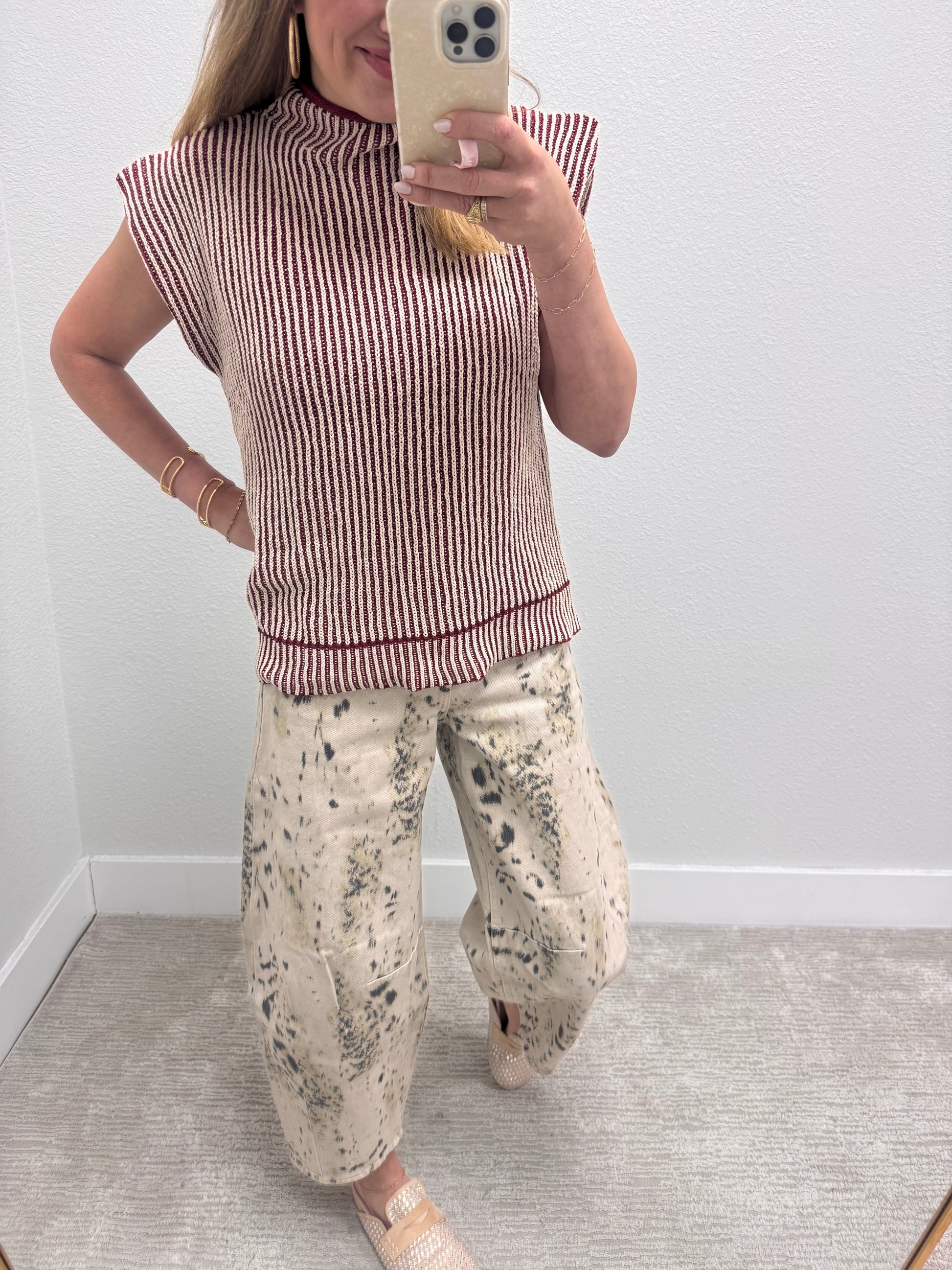 Burgundy Two Tone Ribbed Knit Sweater Vest