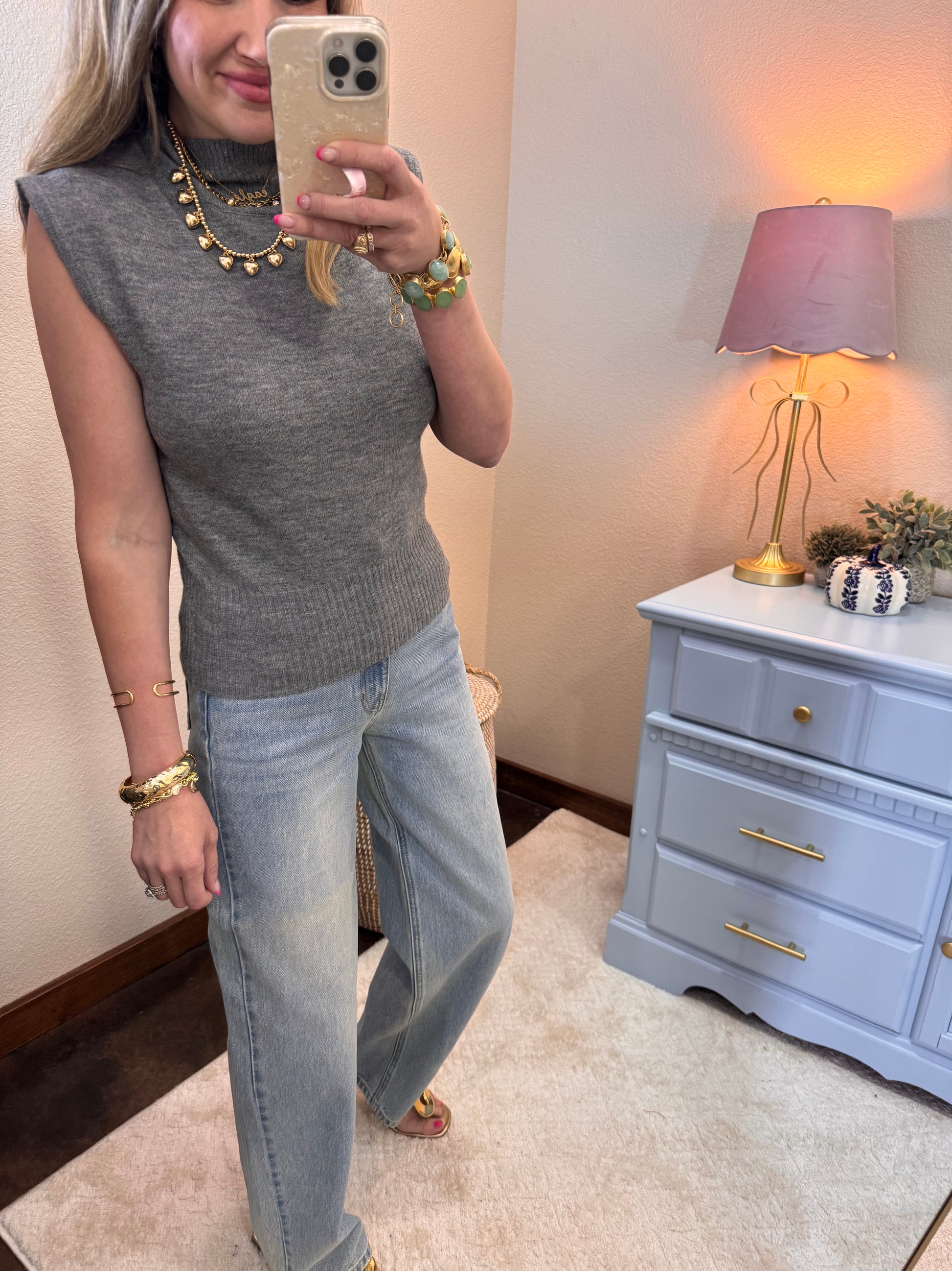 Charcoal High Neck Sleeveless Knit Top