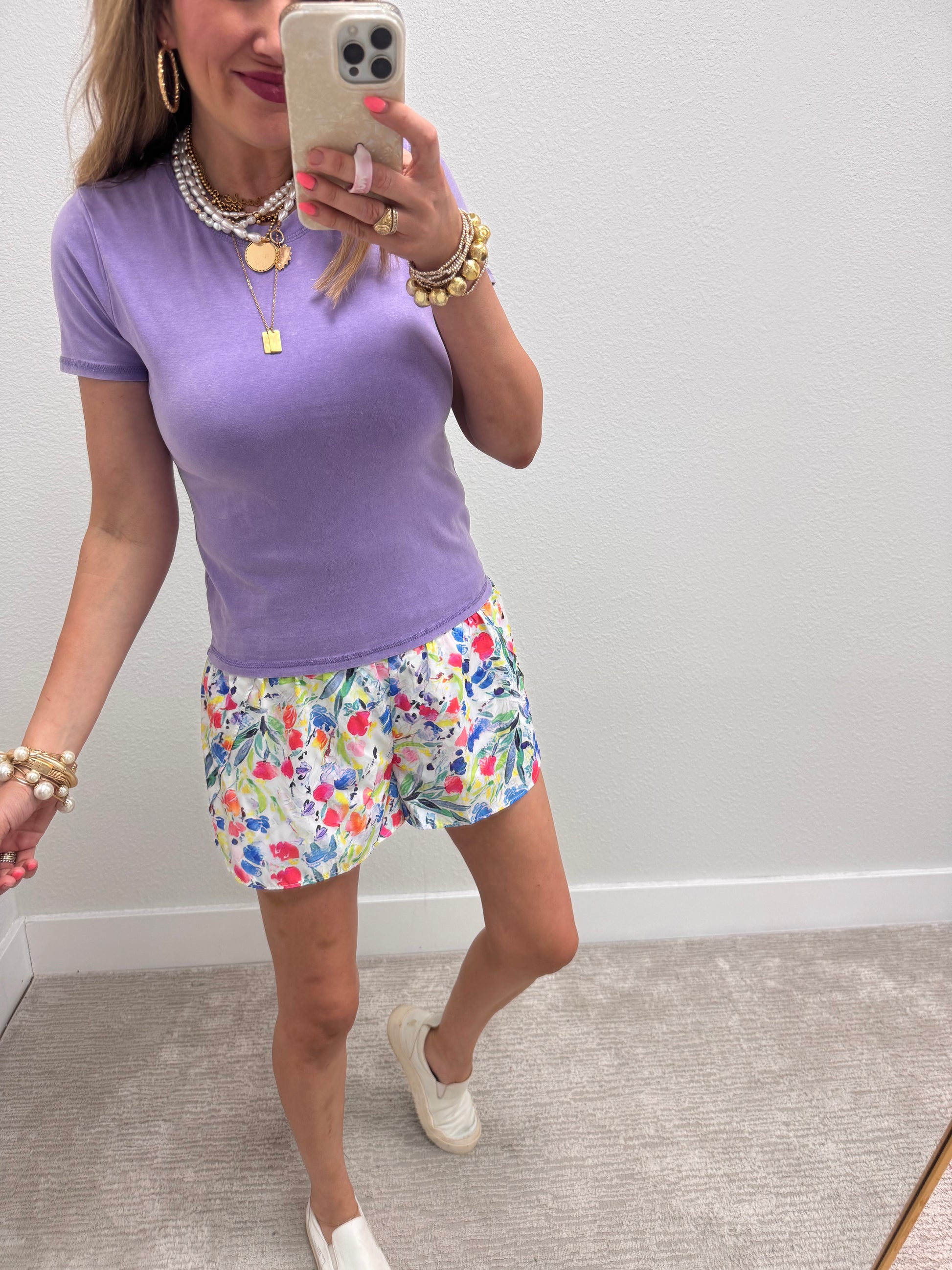 The cutest little printed athletic shorts and a FP look for less! These are a smocked waist and are a fitted fit, Macy is a 24/25 in pants wearing the small, she is 5’7. If unsure or in between, we suggest to size up