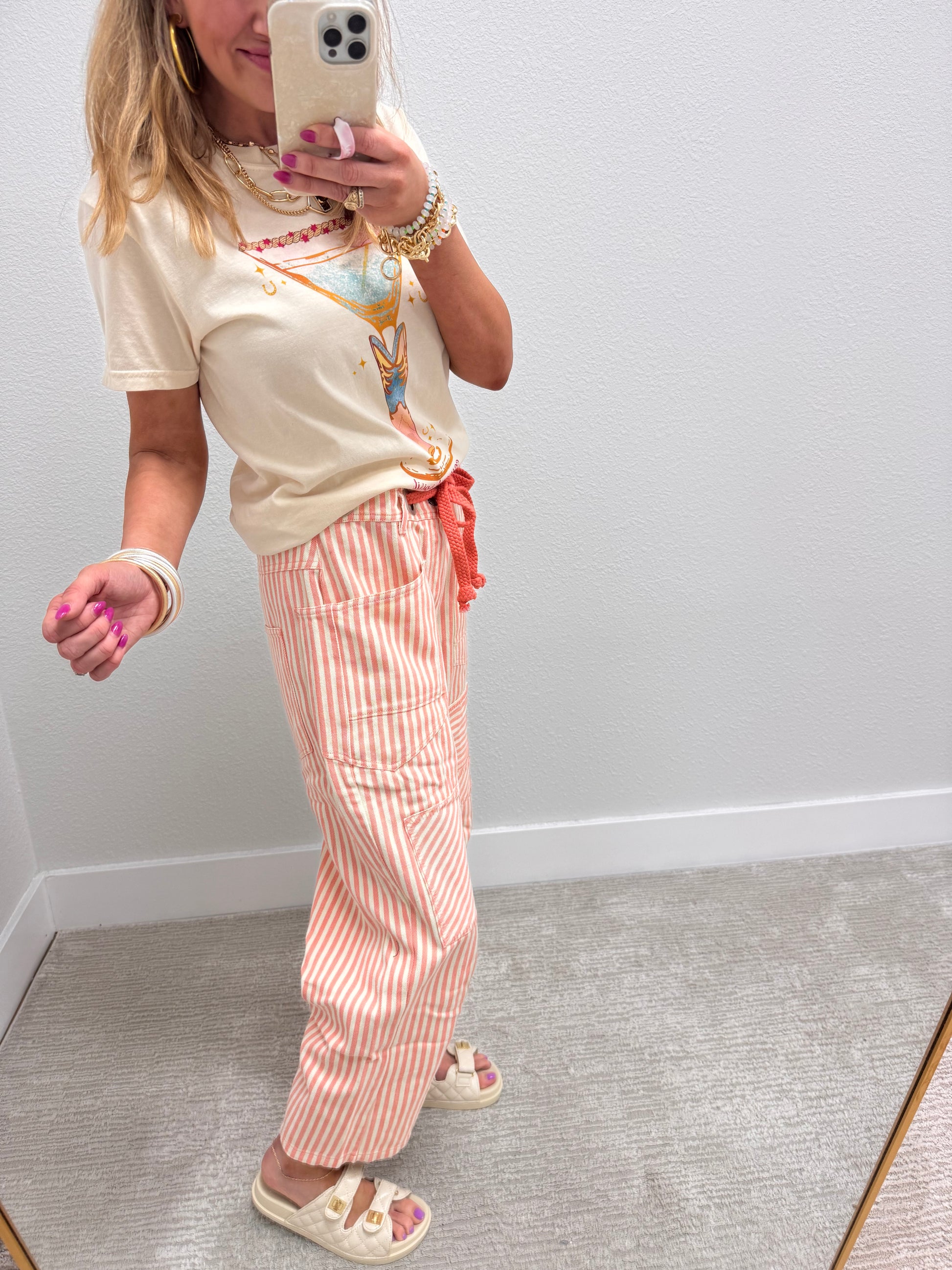 Our favorite pants are back!! These are so, so cute and look so much like the FP version! They are a loose fit and you can tie the waist as tight or as loose as you would like. Macy is a 2/4 or a 24 or 25 pants wearing the small and she has quite a bit of room but just ties them tighter. She is 5’7. Waist measurements are: