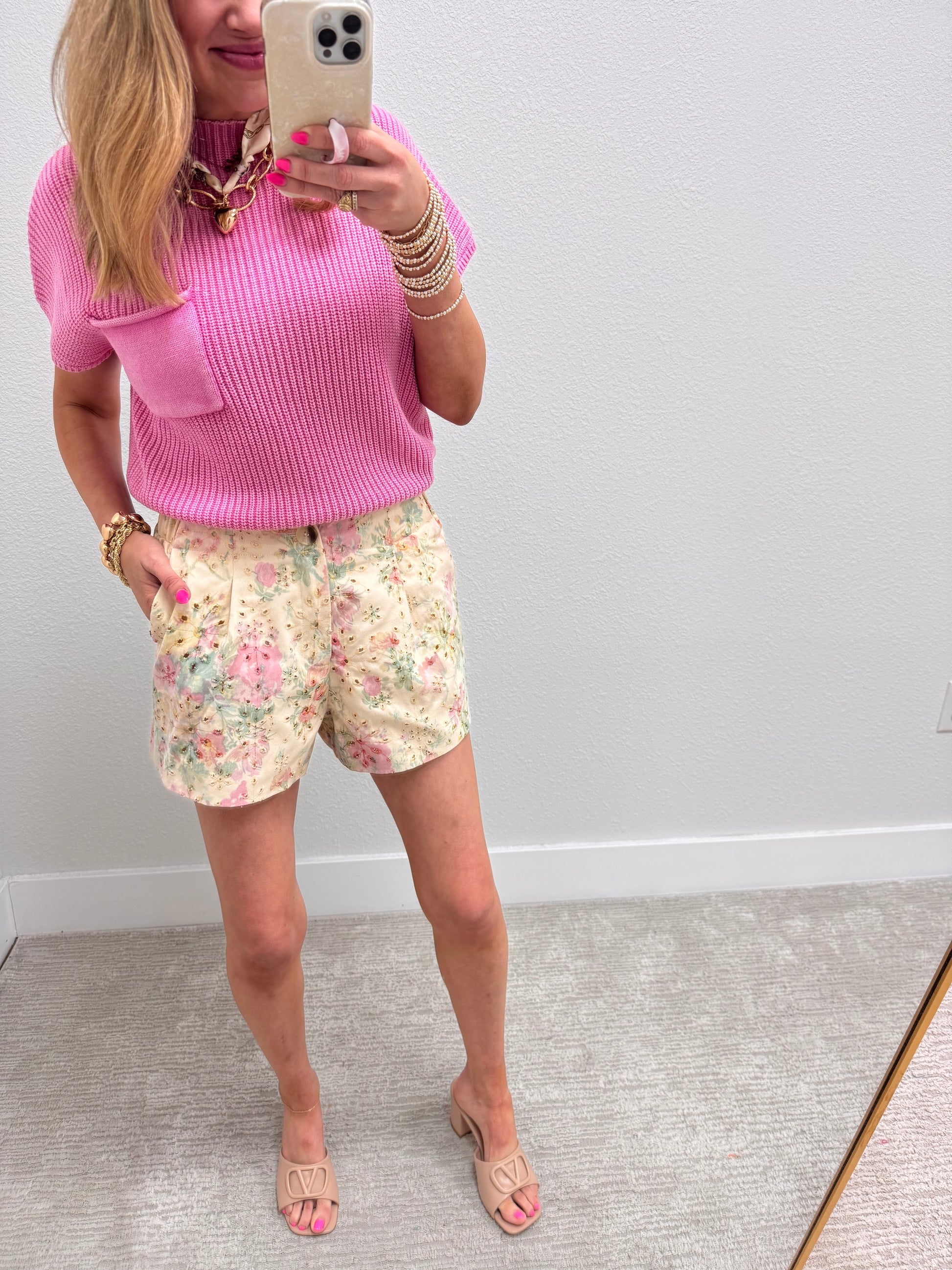 The cutest little shorts ever, eyelet and the cutest floral print. They zip and button in the front and elastic in the back but they are a fitted fit, Macy is a 24 or 25 in pants and the small fits her perfectly, she is 5’7 for height