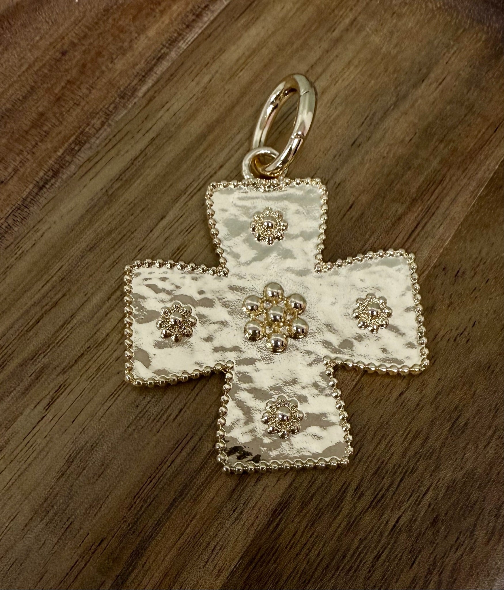 The prettiest cross pendant to add to all of your favorite necklaces. It has an open clasp so you can just hook it on to any necklace!
