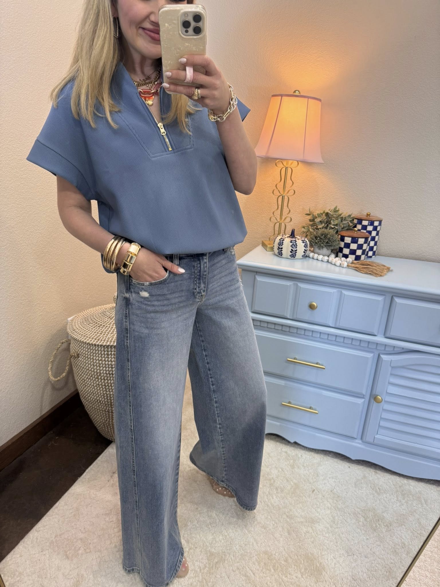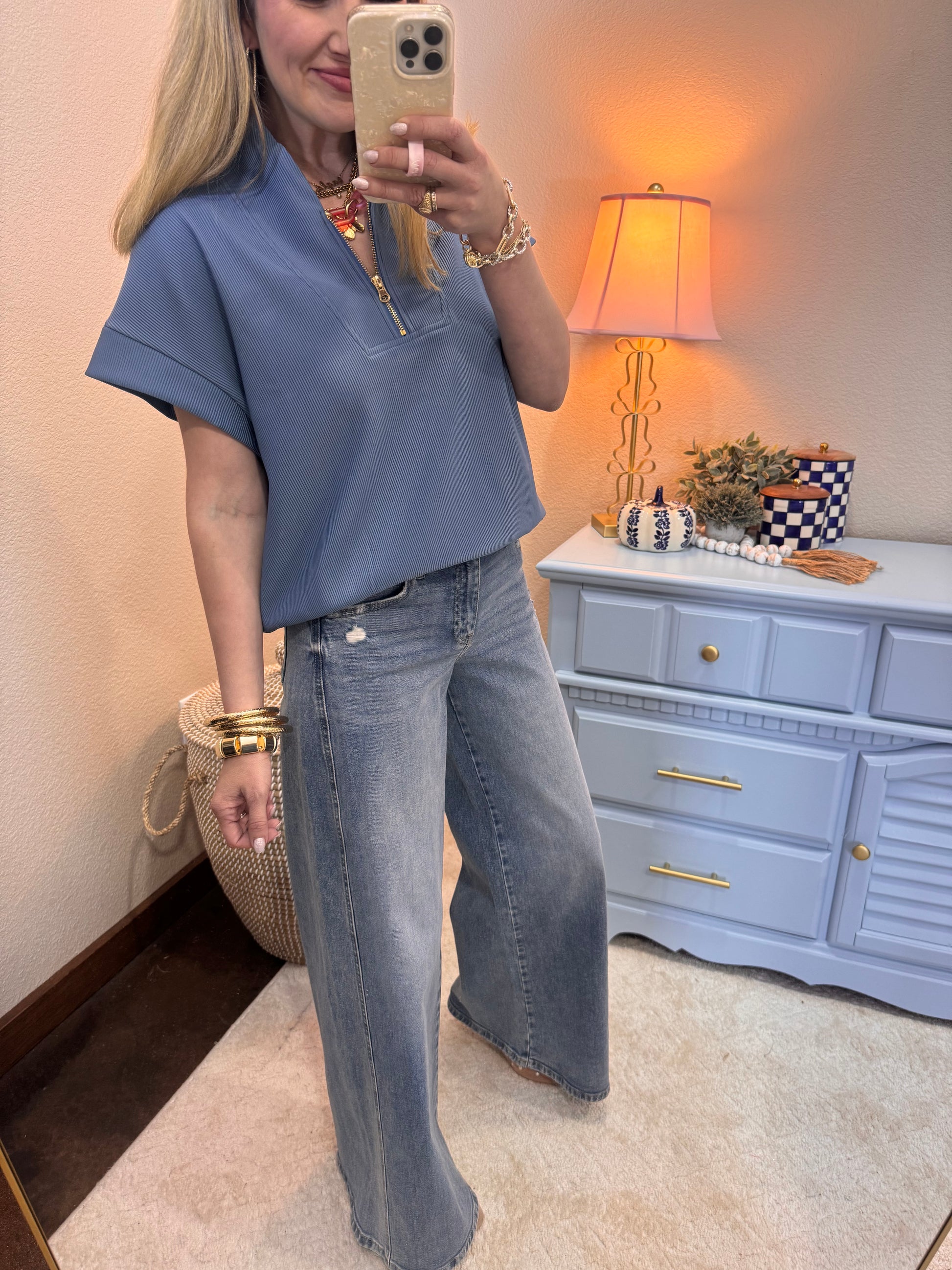 We are so excited for this new style of top, it’s our favorite ribbed poly material in a super cute 3/4 zip style! These are a relaxed fit, Macy is a 2/4 and 5’7 wearing the S/M