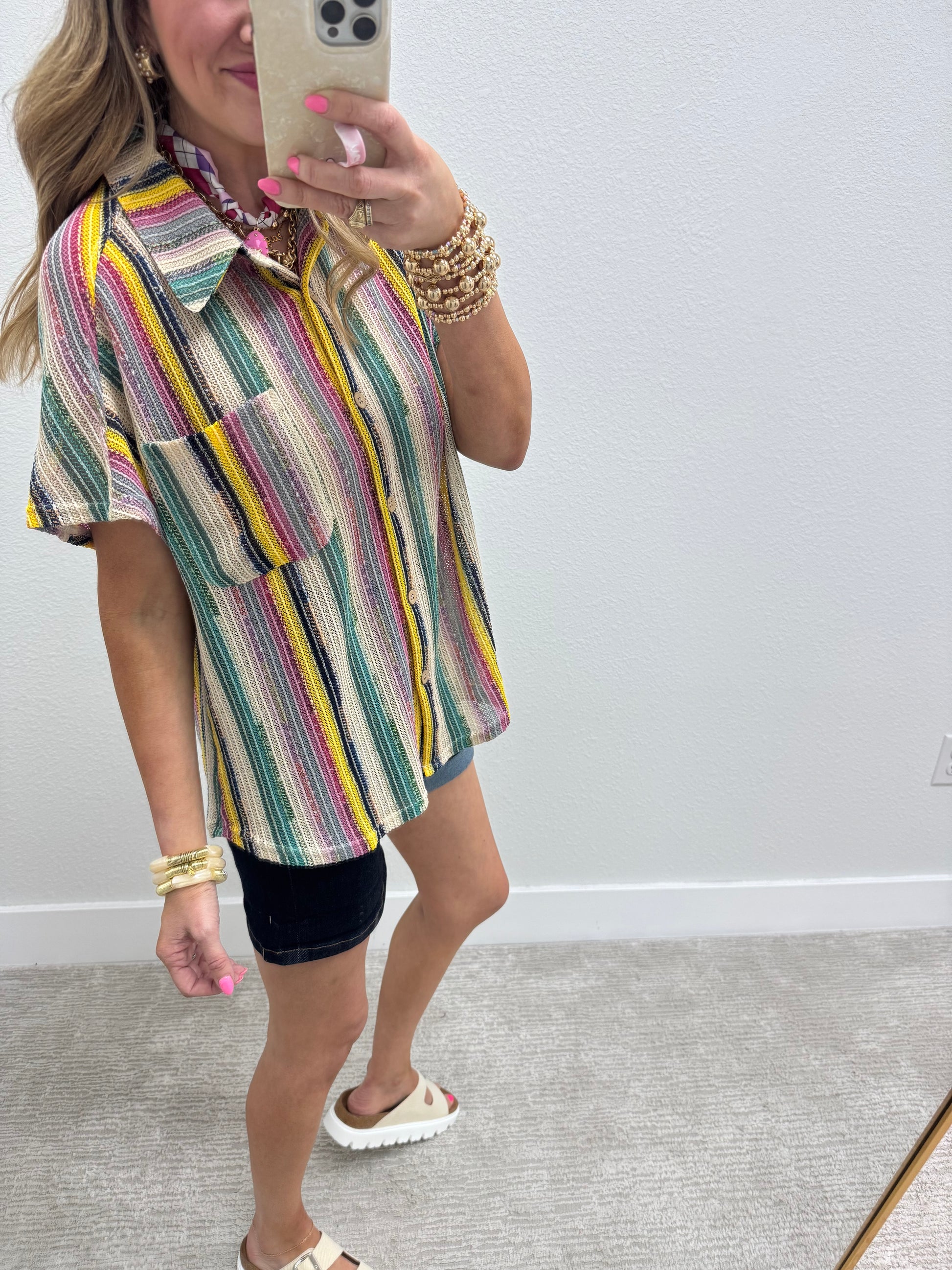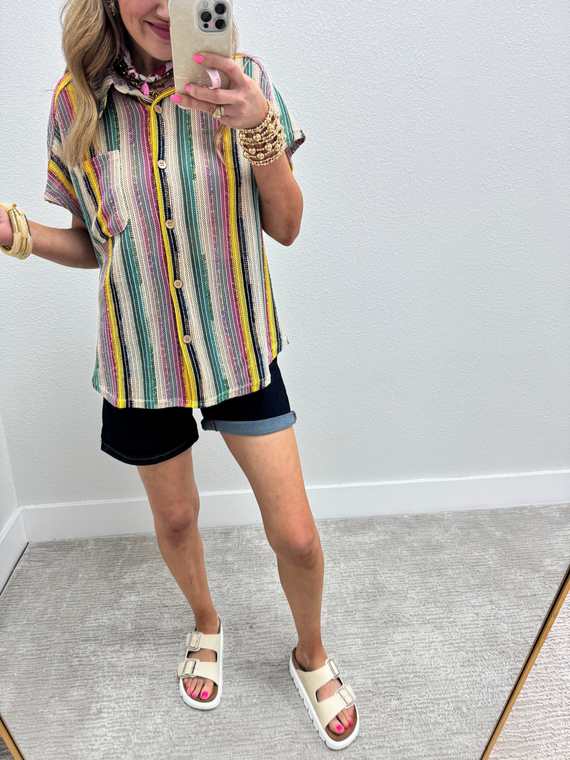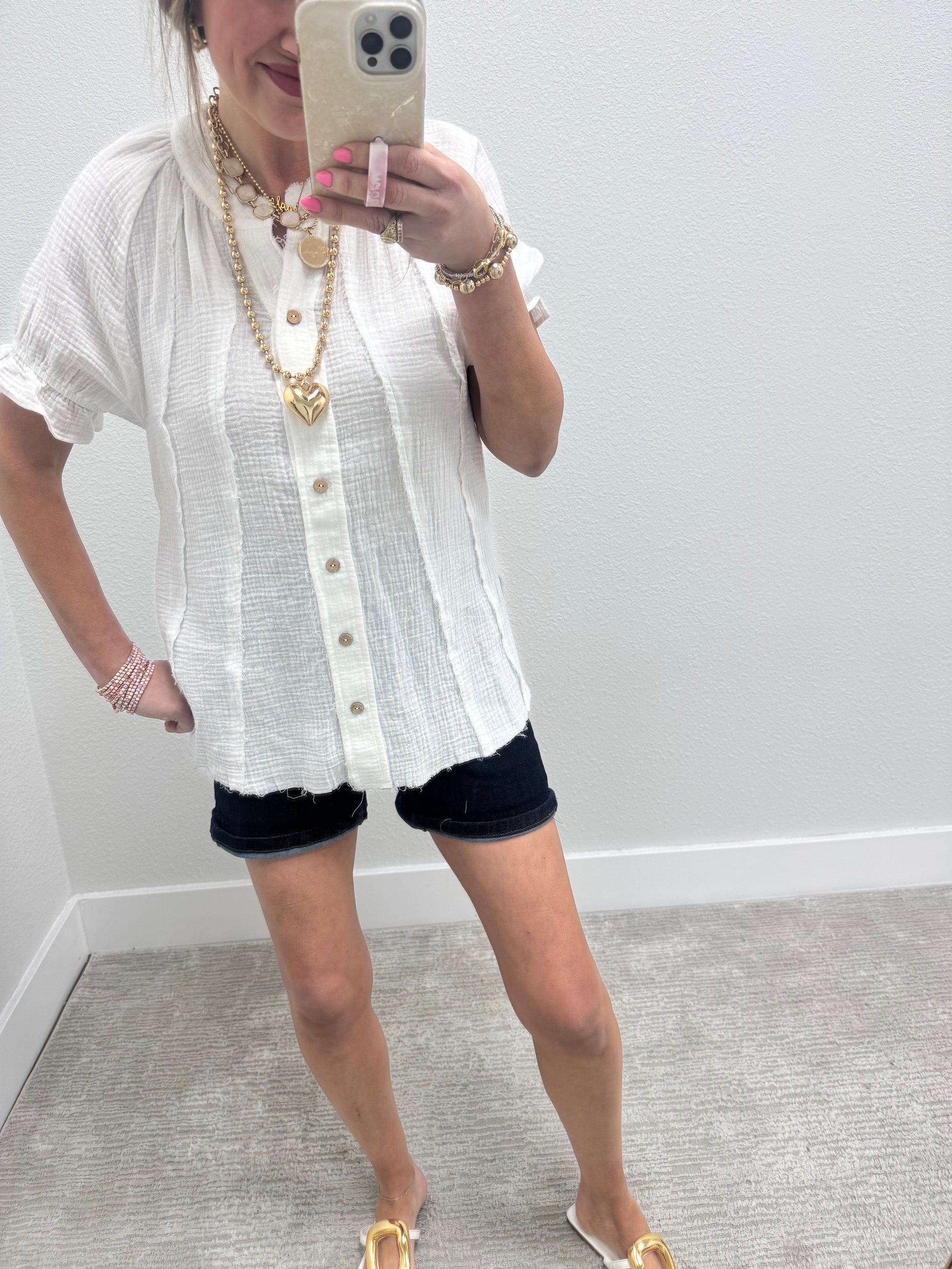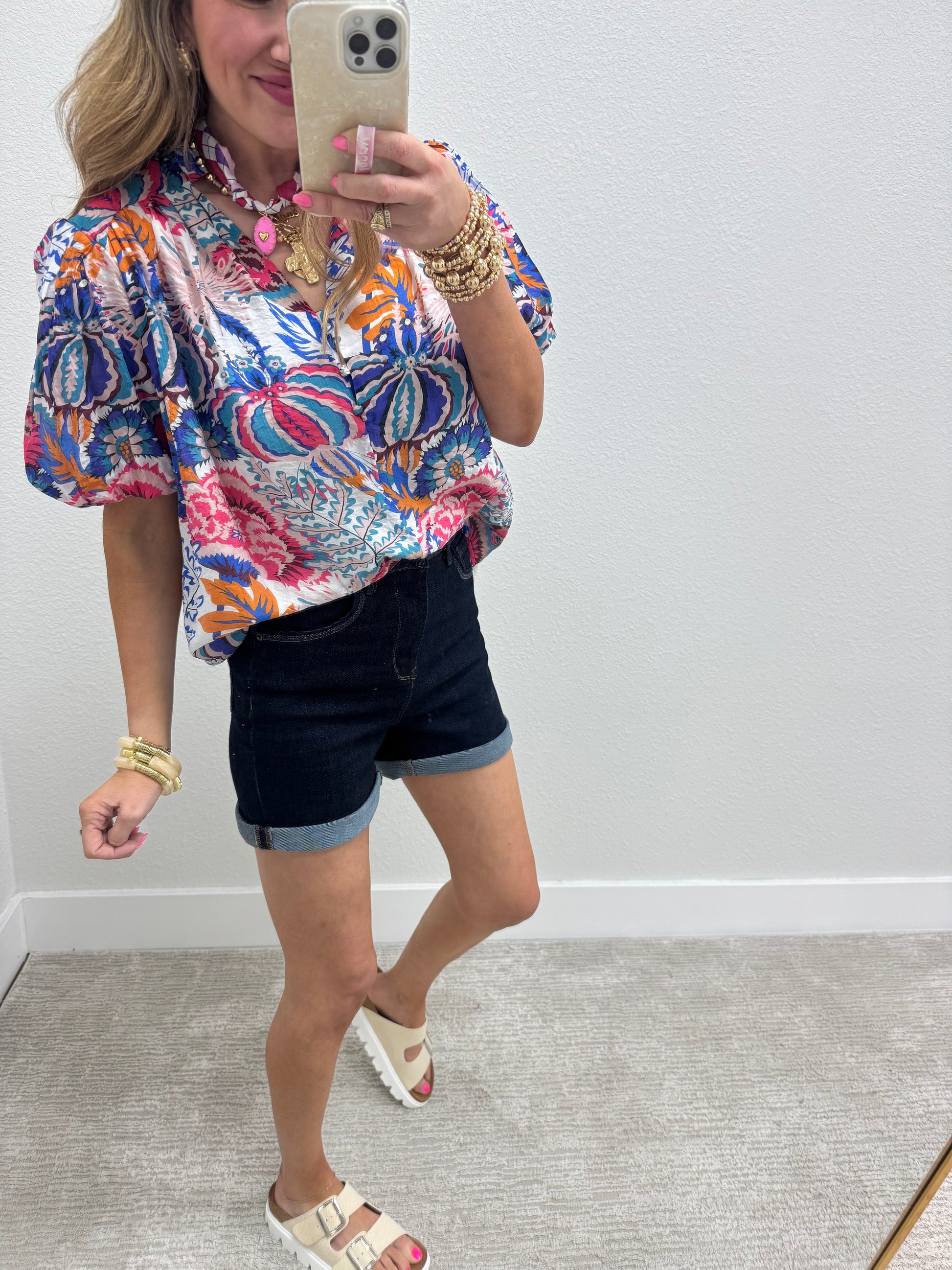 A new pair of Risen, stretchy and amazing!! They come cuffed, and you can uncuff once or twice. About a 4” inseam cuffed and about a 6” inseam if you uncuff all the way. They are a high rise and stretchy. We suggest size 26/27 small, 28/29 medium, 30/31/32 XL. Macy is a 2/4 and 5’7 wearing the small