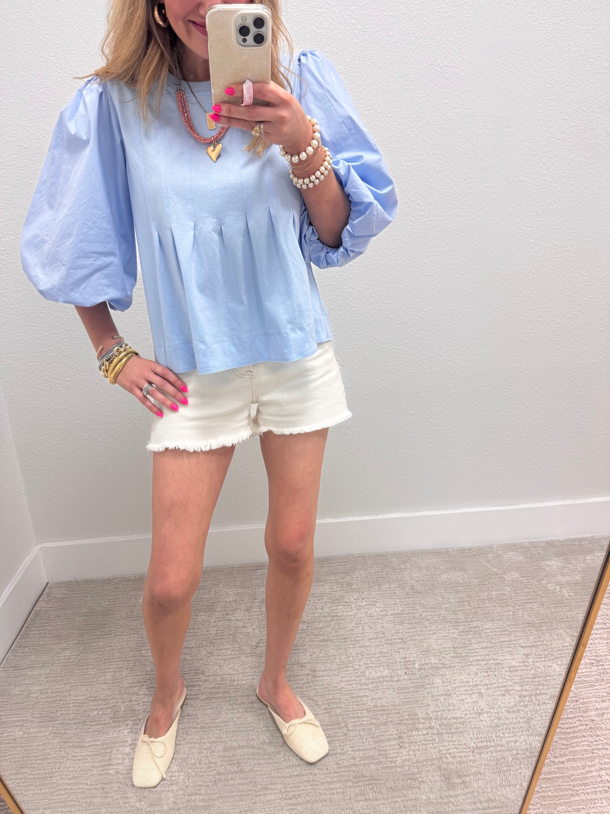 Baby Blue Pleated Puff Sleeve Top