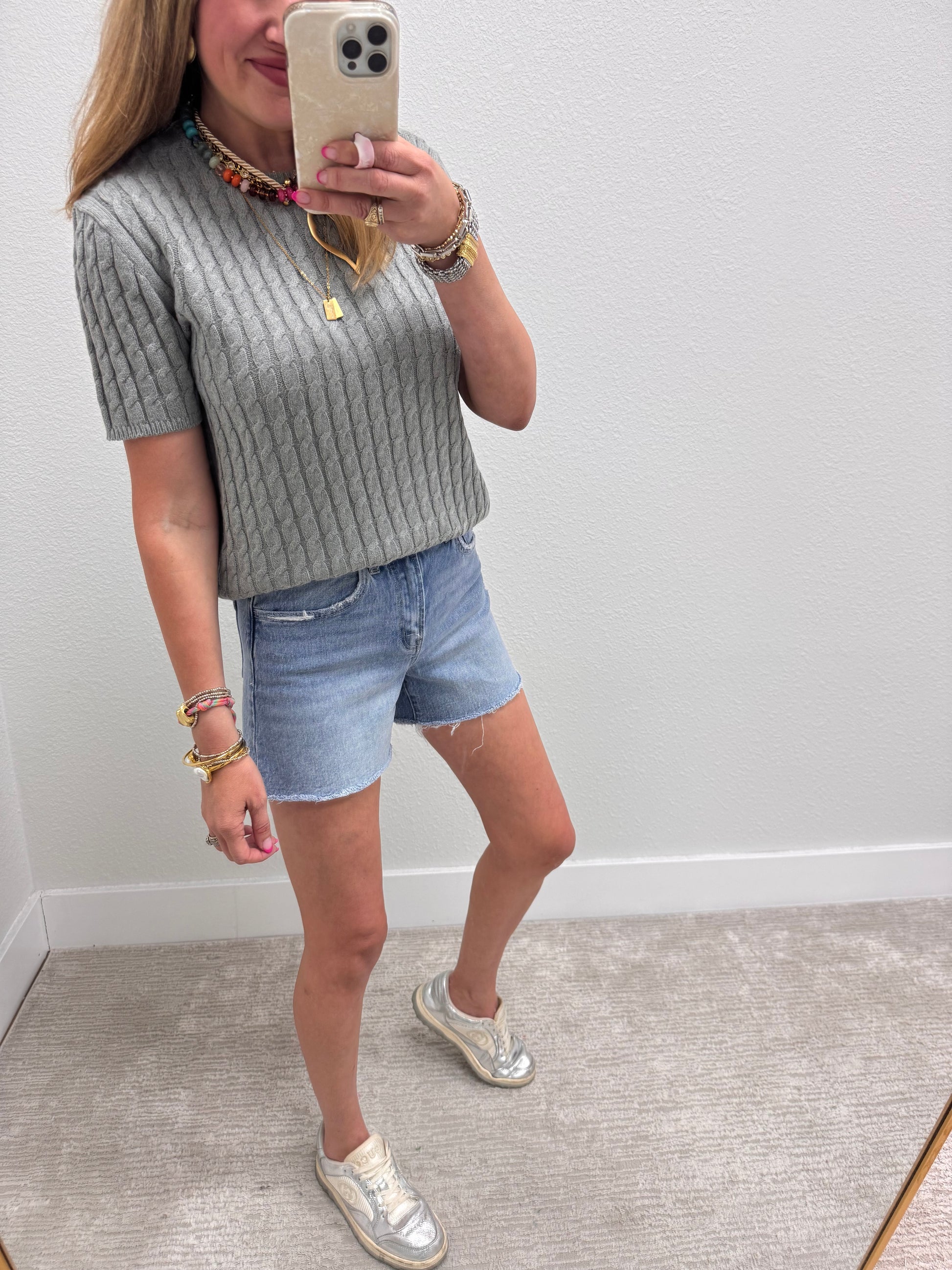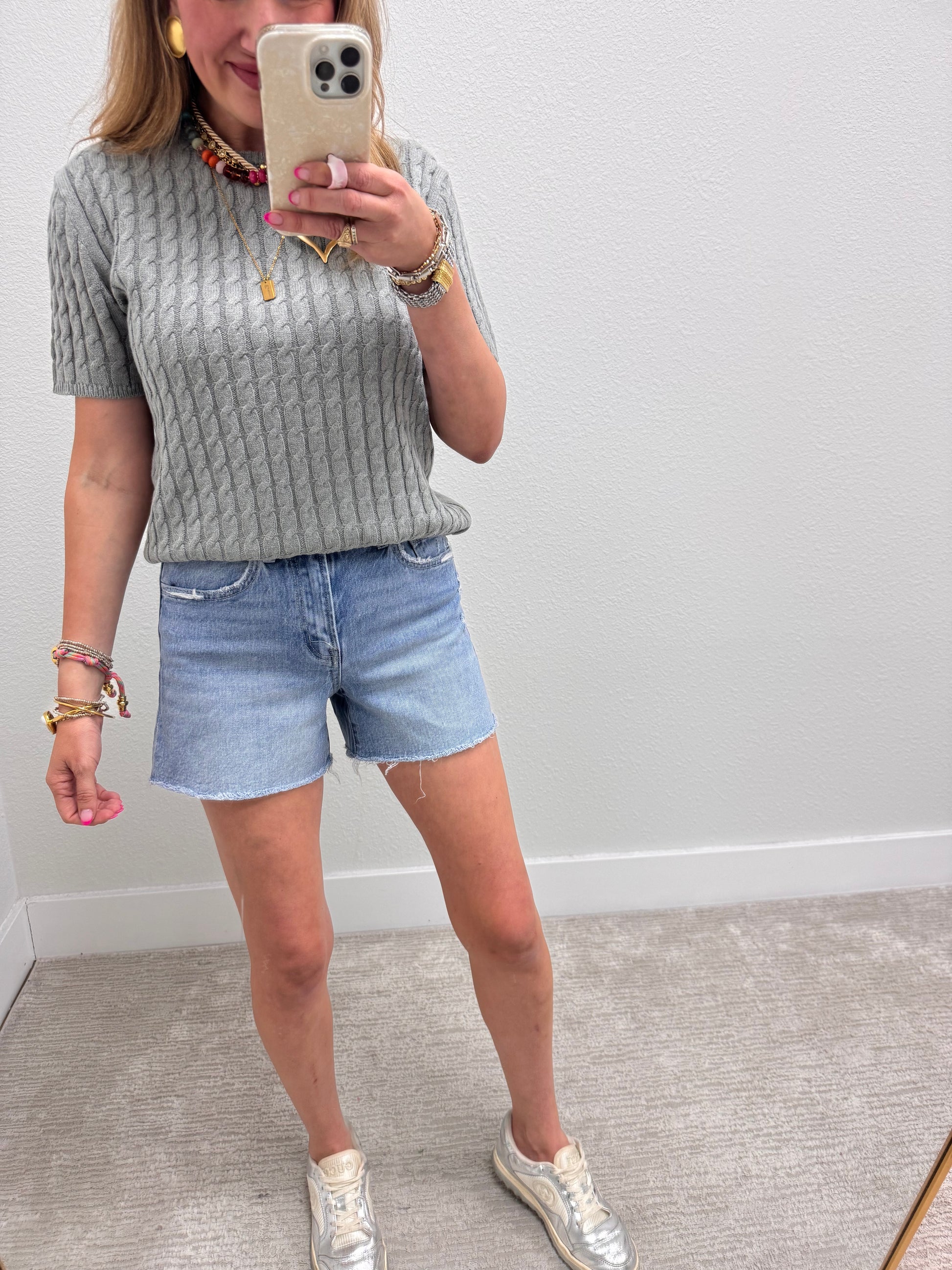 Heather Gray Round Neck Cable Knit Top