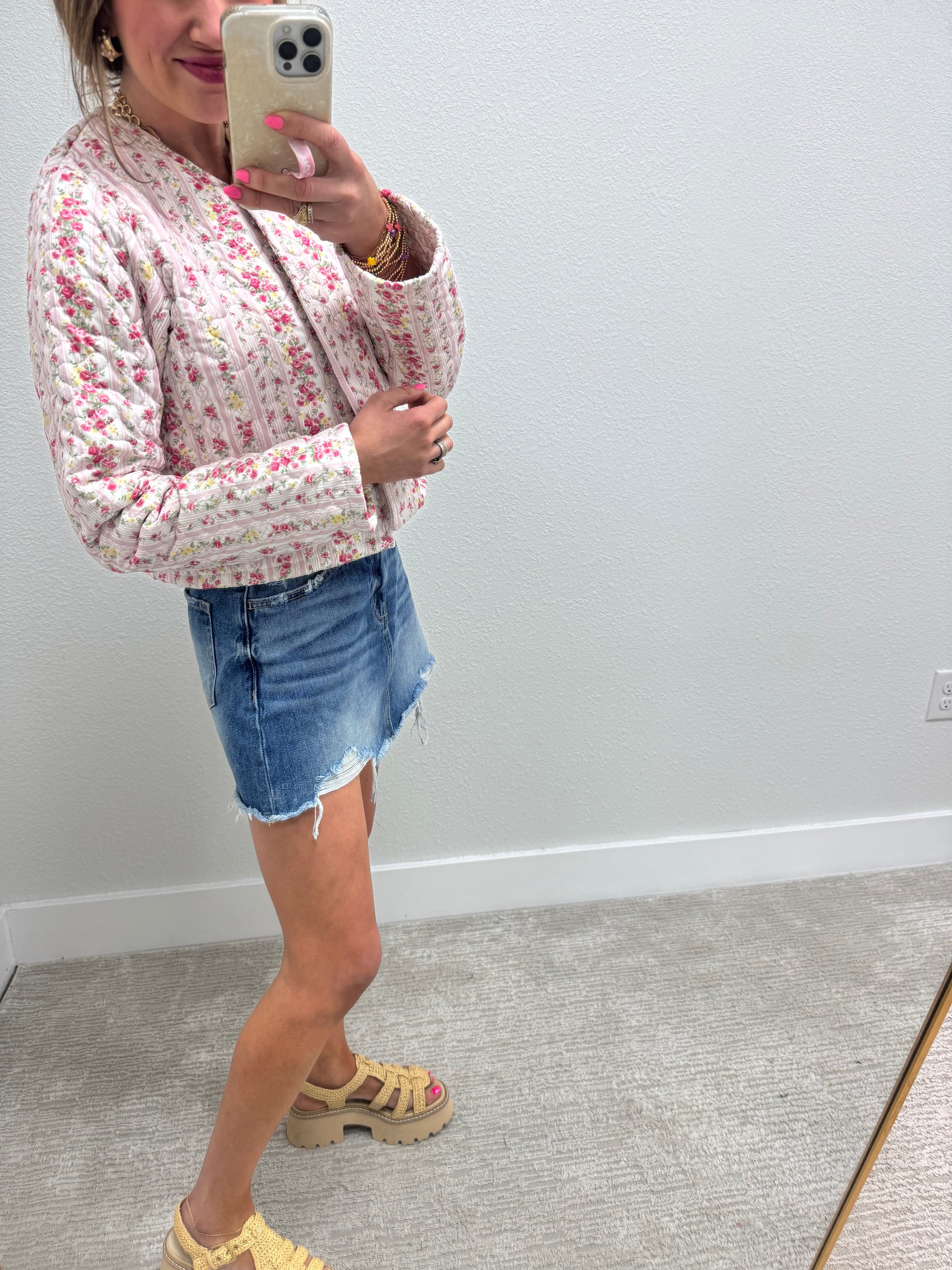 Elevate your wardrobe with our Ida Mae Quilted Cropped Jackets. These jackets blend fashion and functionality seamlessly, offering a stylish layering option for any occasion. Crafted with care in Texas, each jacket is machine washable for easy maintenance and durability. Whether you're pairing it with jeans for a casual look or dressing it up for a night out, our quilted cropped jackets are a versatile and timeless addition to your closet. Shop now to experience the comfort and style of Ida Mae Home.