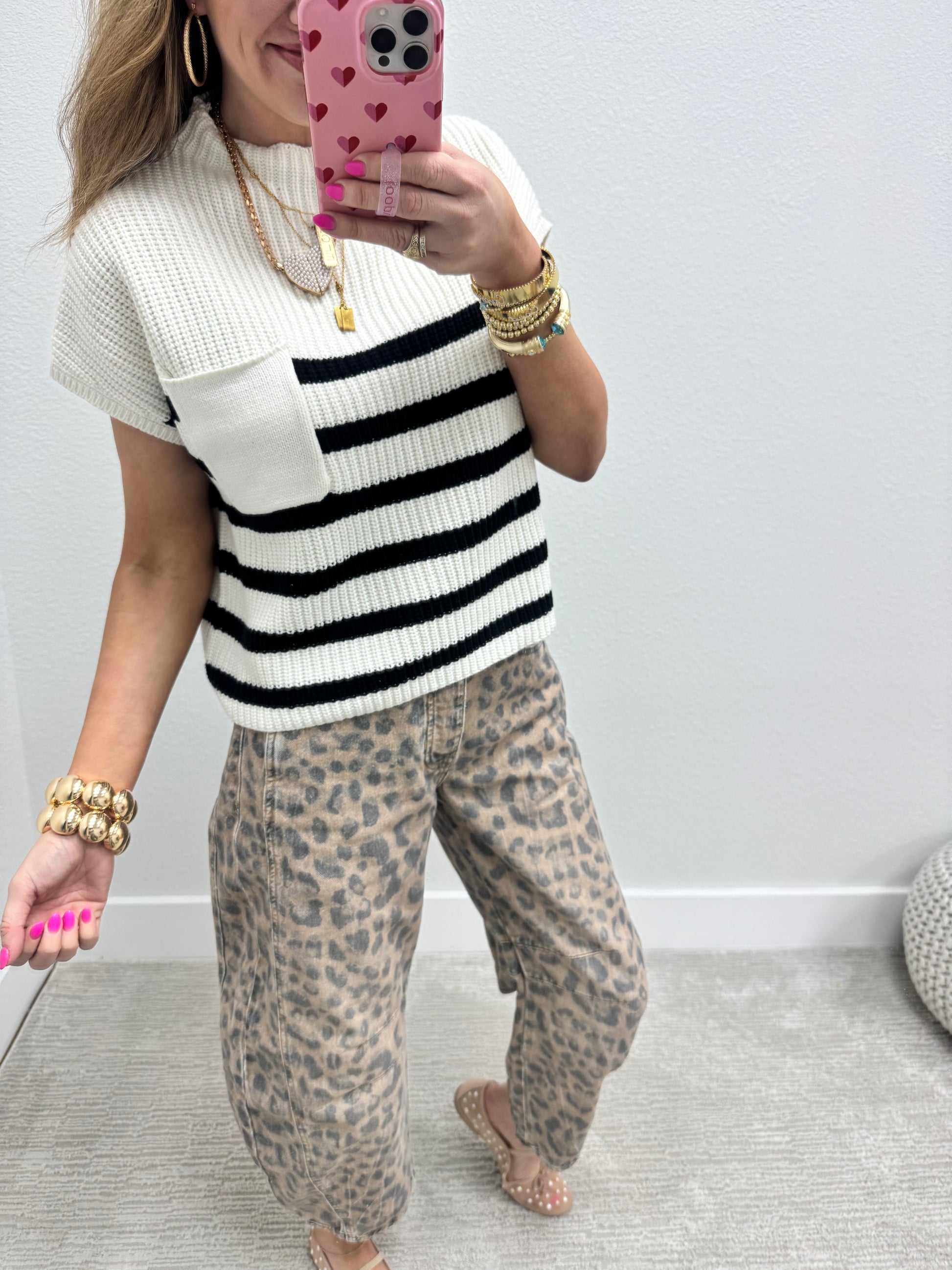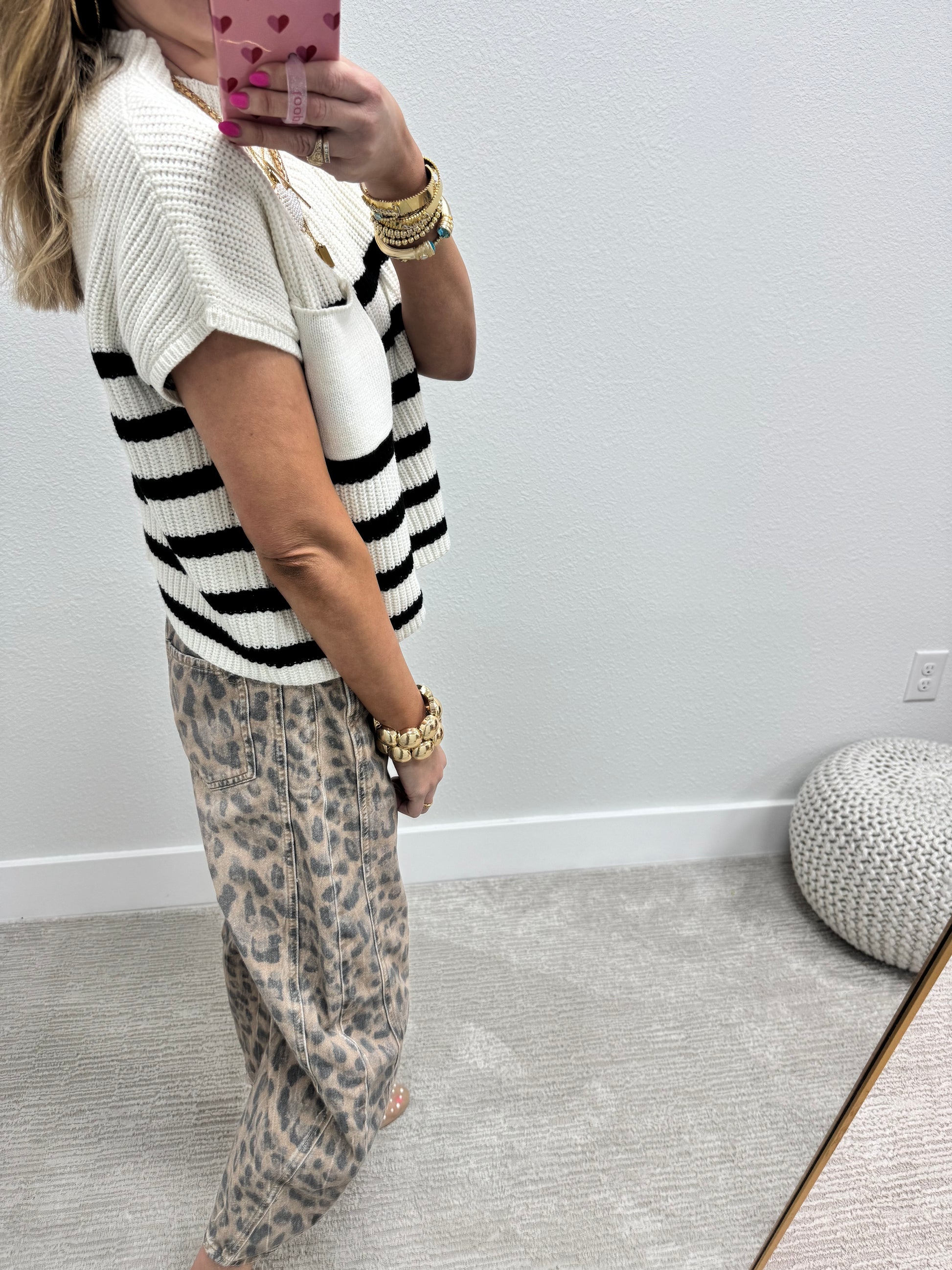 Ivory & Black Stripe Crop Short Sleeve Sweater Top