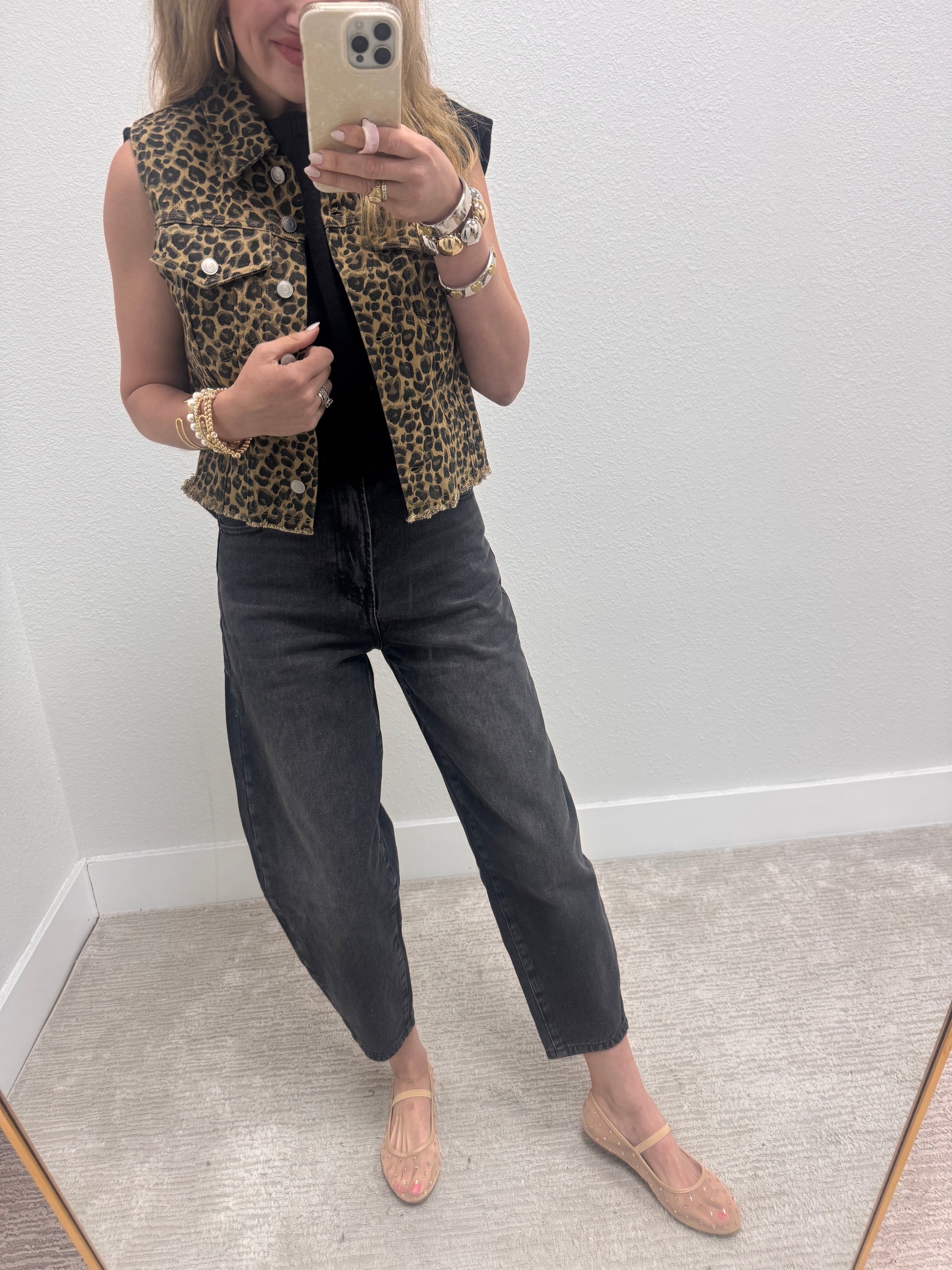 How cute are these black Barrel Jeans from Kancan?! They are 100% cotton so there is no stretch but they are a relaxed TTS fit. Macy is a 24/25 in pants wearing the 24 here. Approx a 10" rise and approx a 26" inseam
