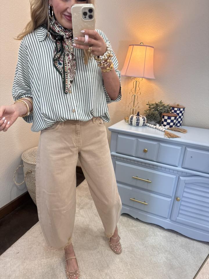 These are a TTS fit, high rise and no stretch. Macy is a 24/25 in pants wearing the 24