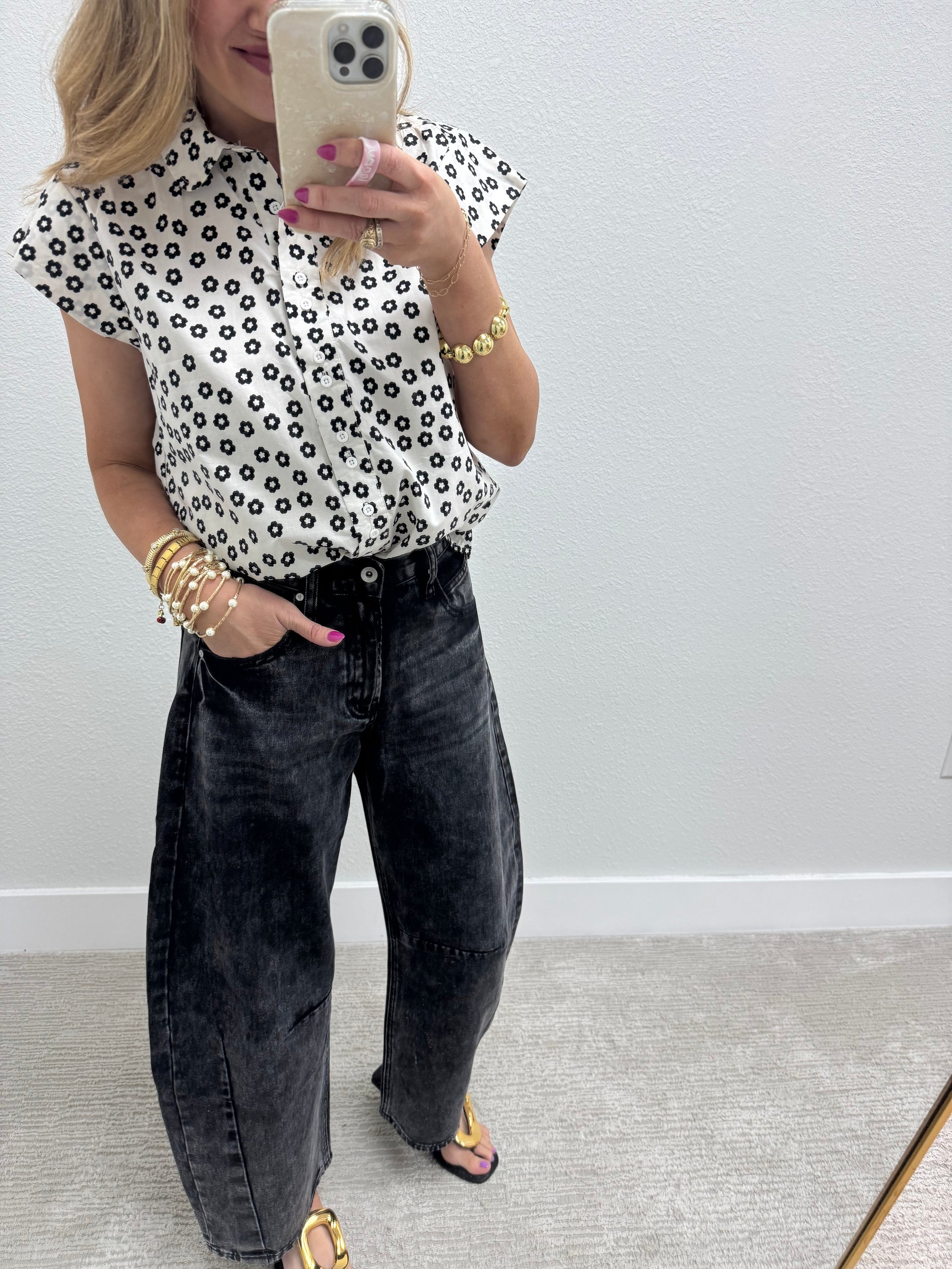 Macys favorite pair of barrels that we have ever had so we decided to bring them back! The nicest quality denim and just so cute on. They are TTS with no stretch, Macy is a 24 or 25 in pants wearing the 24 here
