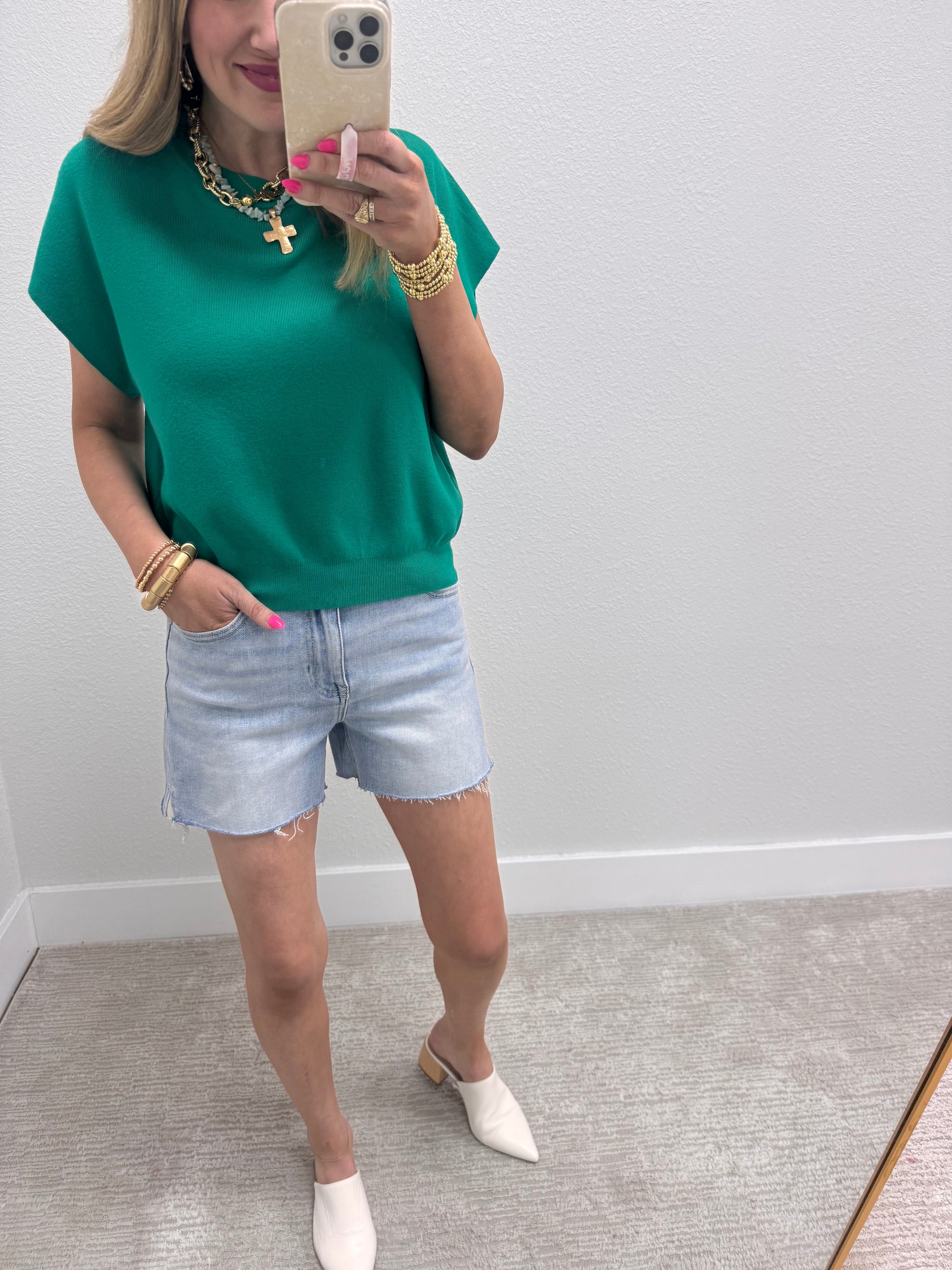 Kelly Green Round Neck Dolman Sleeve Top FS