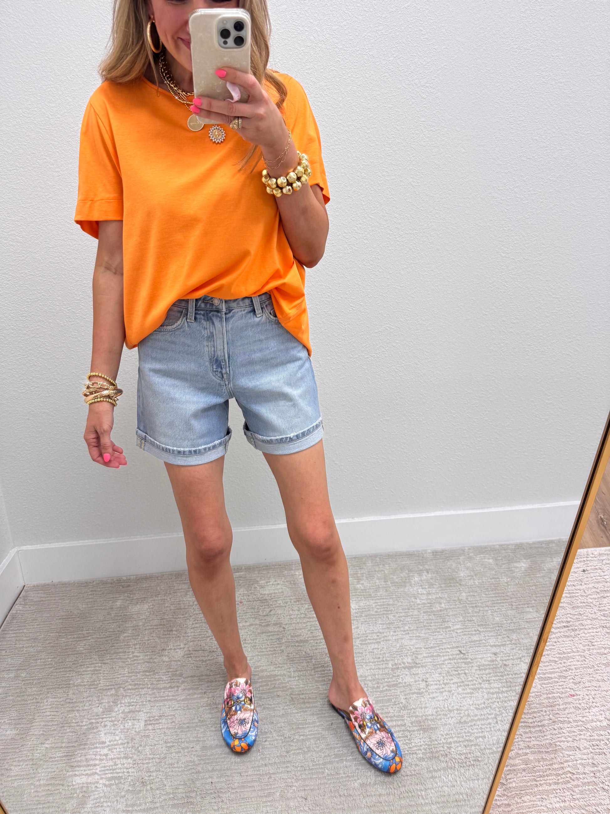 The most amazing pair of Vervet shorts. A very classic denim so no stretch and the cuff is sewn. They are a high rise with approx a 6” inseam. Macy is a 24/25 and 5’7 wearing the XS. We suggest 24/25 XS, 26/27 small, 28/29 medium, 30/31 large, 32ish XL. If unsure or in between sizes go up as there is no stretch.
